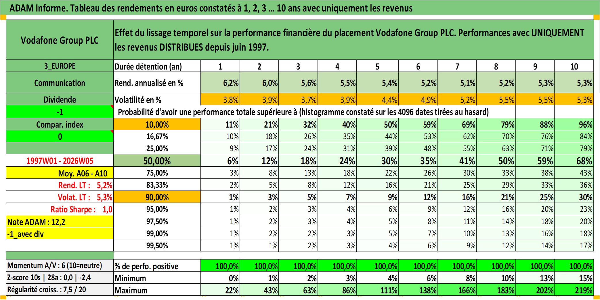 Dernière perfo 10 ans en %