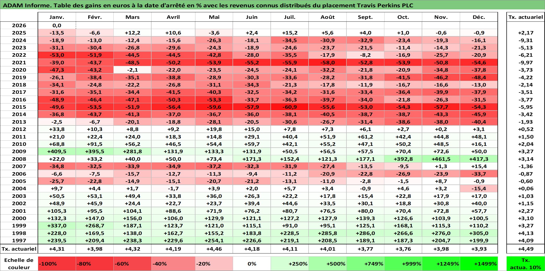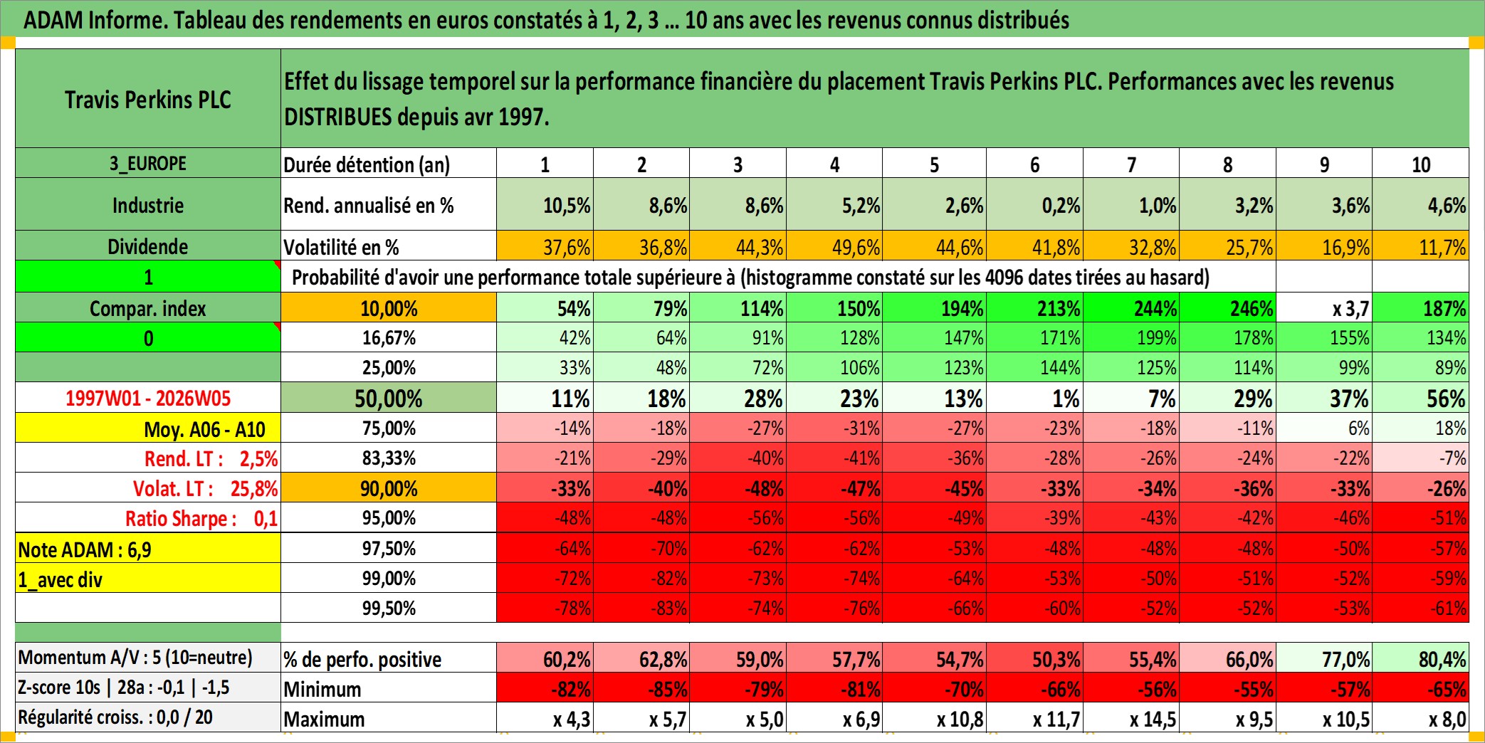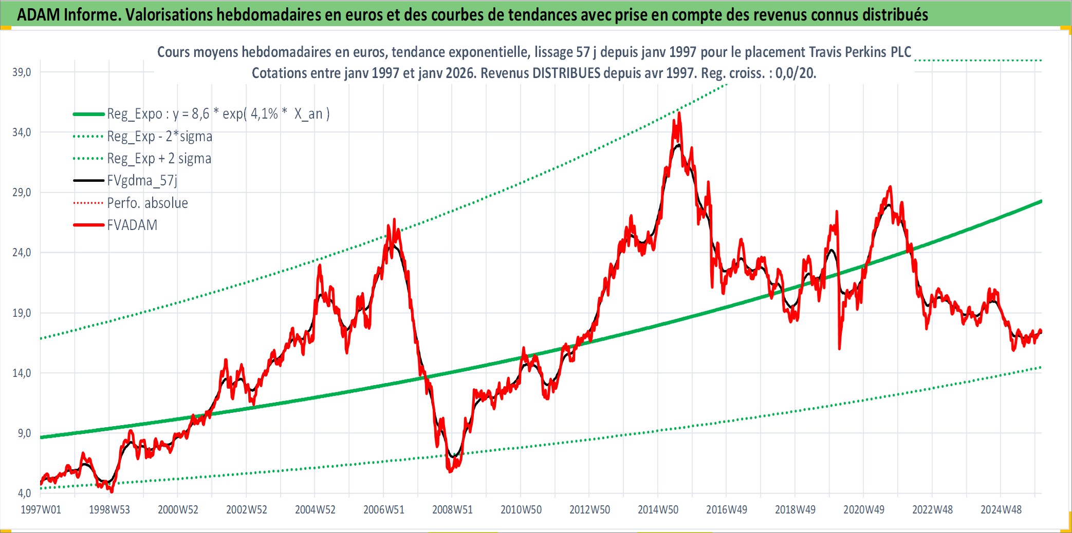 Site dédié aux investisseursPage dédiée sur site financeAnalyse des valorisations hebdomadaires de l'action Travis Perkins PLC. Cet actif est cote en GBX. Les valorisations sont en contrevaleur EURO et couvrent les semaines 1997W01 a 2026W05. Les revenus de cet actif financier sont pris en compte depuis la semaine 1997W15. La note ESG de cet actif n'est pas connue.