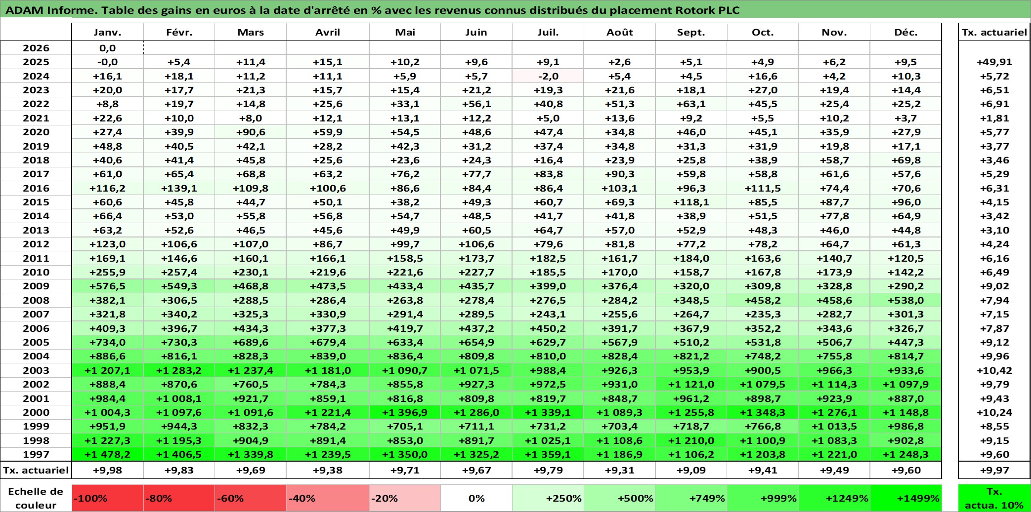 Site dédié aux investisseursPage dédiée sur site financeAnalyse des valorisations hebdomadaires de l'action Rotork PLC. Cet actif est cote en GBX. Les valorisations sont en contrevaleur EURO et couvrent les semaines 1997W01 a 2026W05. Les revenus de cet actif financier sont pris en compte depuis la semaine 1997W14. La note ESG de cet actif n'est pas connue.
