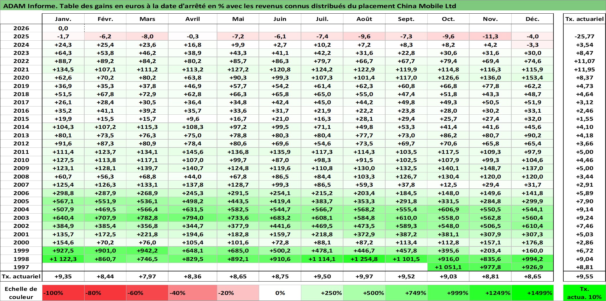 Dernière perfo 10 ans en %