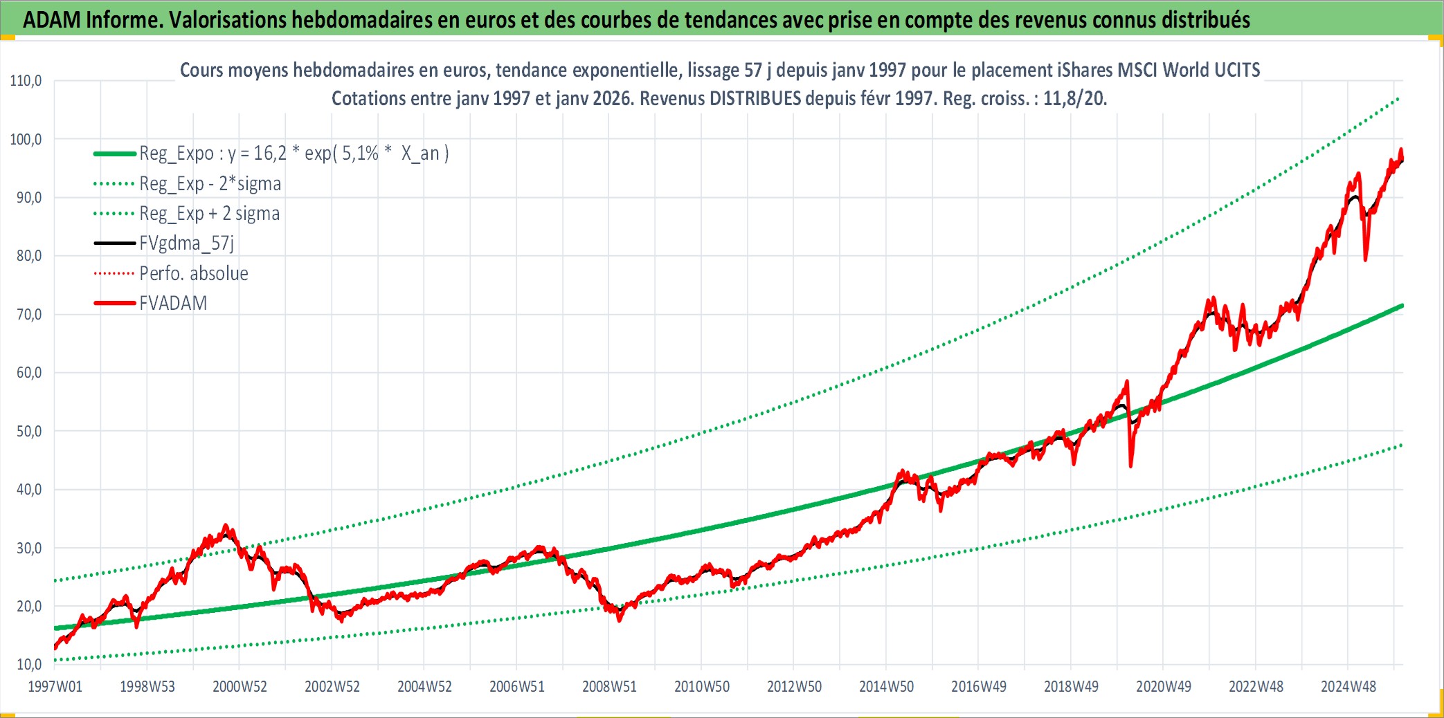 Site dédié aux investisseursPage dédiée sur site financeAnalyse des valorisations hebdomadaires du fonds iShares MSCI World UCITS ETF Dist. Cet actif est cote en USD. Les valorisations sont en contrevaleur EURO et couvrent les semaines 1997W01 a 2026W05. Les revenus de cet actif financier sont pris en compte depuis la semaine 1997W09. La note ESG de cet actif n'est pas connue.