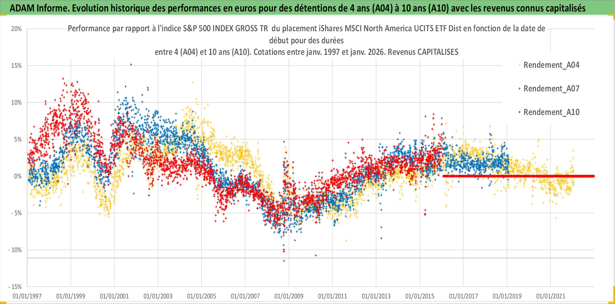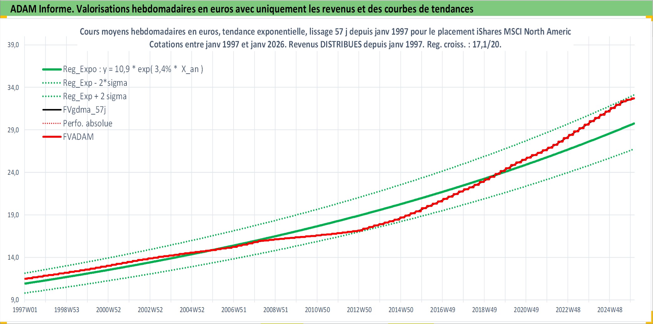 Site dédié aux investisseursPage dédiée sur site financeAnalyse des valorisations hebdomadaires du fonds iShares MSCI North America UCITS ETF Dist. Cet actif est cote en USD. Les valorisations sont en contrevaleur EURO et couvrent les semaines 1997W01 a 2026W05. Les revenus de cet actif financier sont pris en compte depuis la semaine 1997W01. La note ESG de cet actif n'est pas connue.