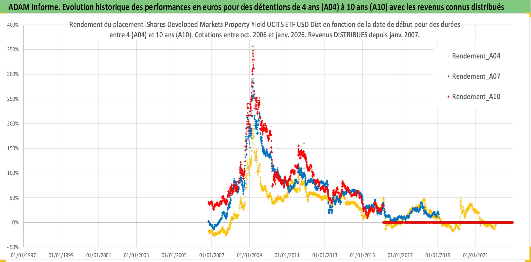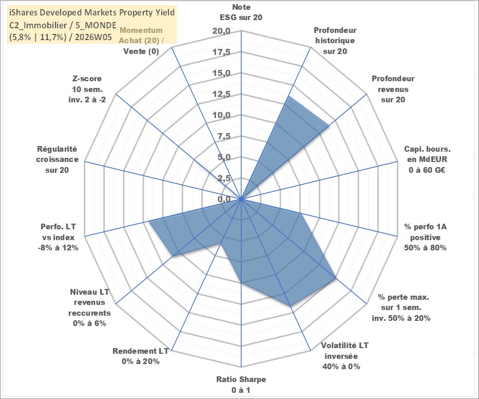 Site dédié aux investisseursPage dédiée sur site financeAnalyse des valorisations hebdomadaires du fonds iShares Developed Markets Property Yield UCITS ETF USD Dist. Cet actif est cote en USD. Les valorisations sont en contrevaleur EURO et couvrent les semaines 2006W42 a 2026W05. Les revenus de cet actif financier sont pris en compte depuis la semaine 2007W05. La note ESG de cet actif n'est pas connue.