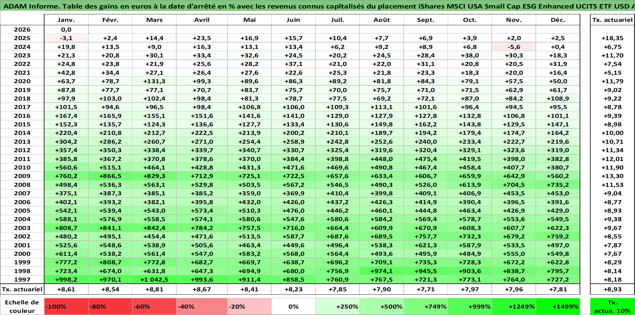 Site dédié aux investisseursPage dédiée sur site financeAnalyse des valorisations hebdomadaires du fonds iShares MSCI USA Small Cap ESG Enhanced UCITS ETF USD Acc. Cet actif est cote en USD. Les valorisations sont en contrevaleur EURO et couvrent les semaines 1997W01 a 2026W05. Les revenus de cet actif financier sont pris en compte depuis la semaine 1997W01. La note ESG de cet actif n'est pas connue.