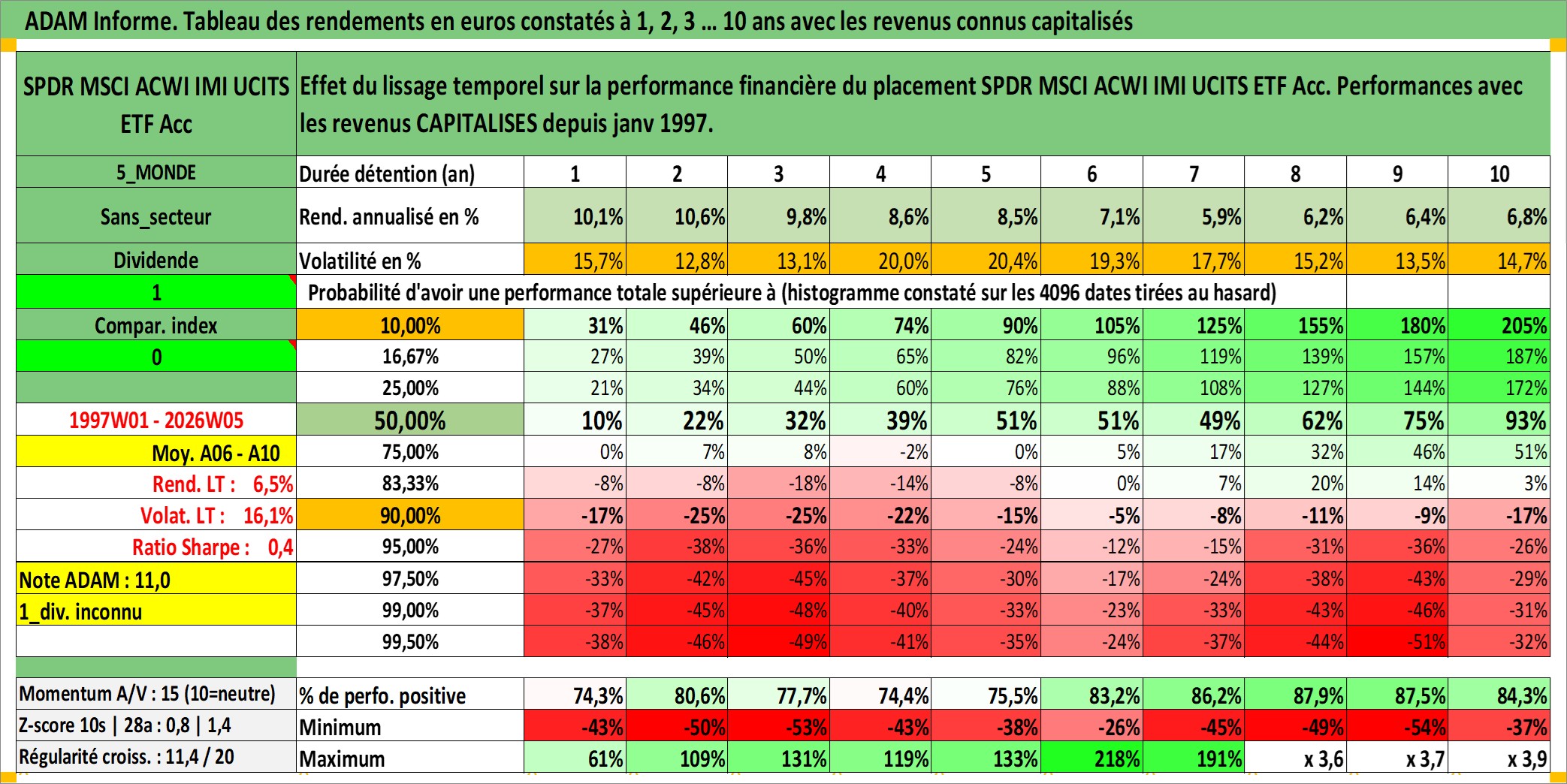 Site dédié aux investisseursPage dédiée sur site financeAnalyse des valorisations hebdomadaires du fonds SPDR MSCI ACWI IMI UCITS ETF Acc. Cet actif est cote en EUR. Les valorisations couvrent les semaines 1997W01 a 2026W05. Les revenus de cet actif financier sont pris en compte depuis la semaine 1997W01. La note ESG de cet actif n'est pas connue.