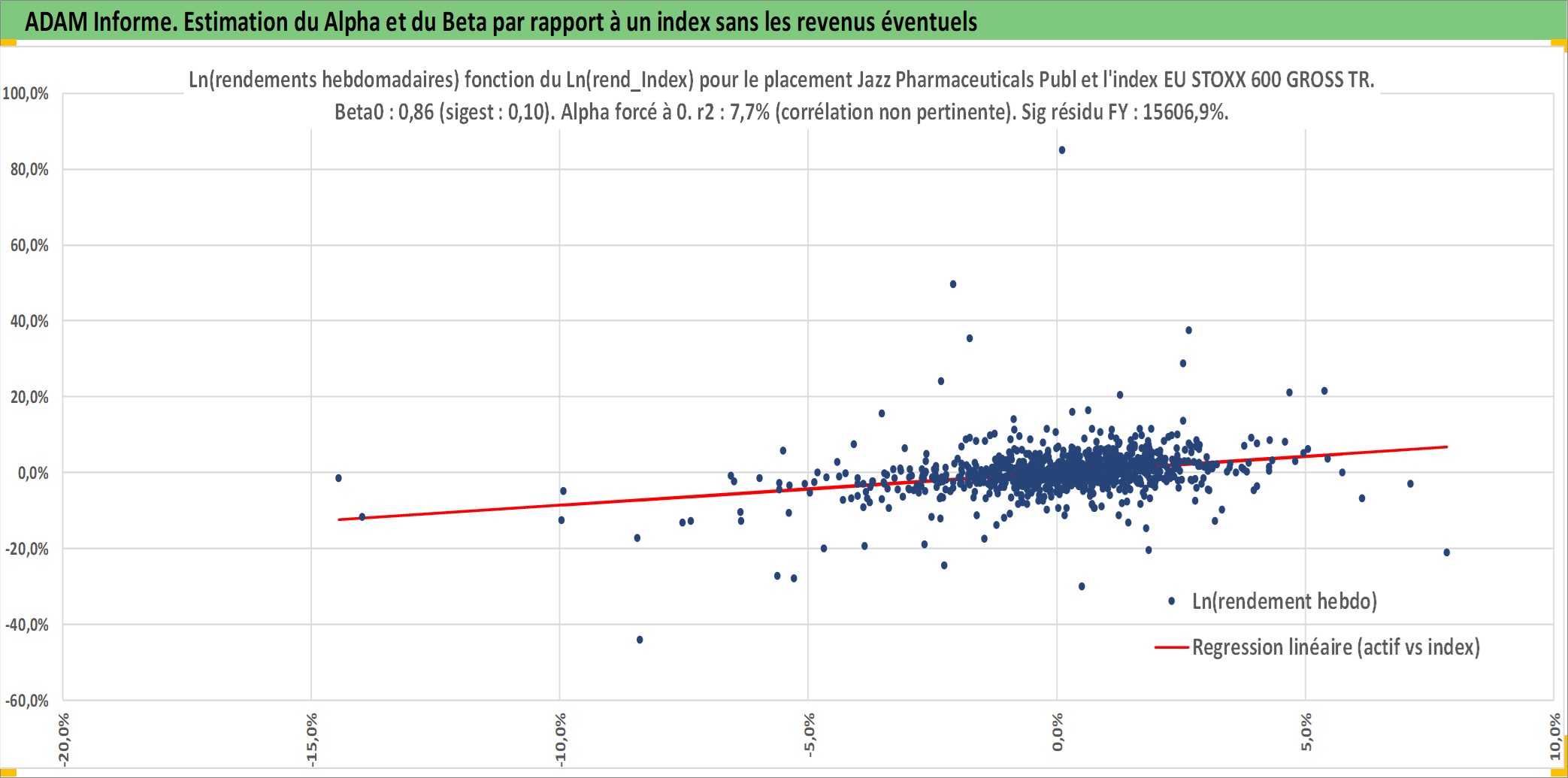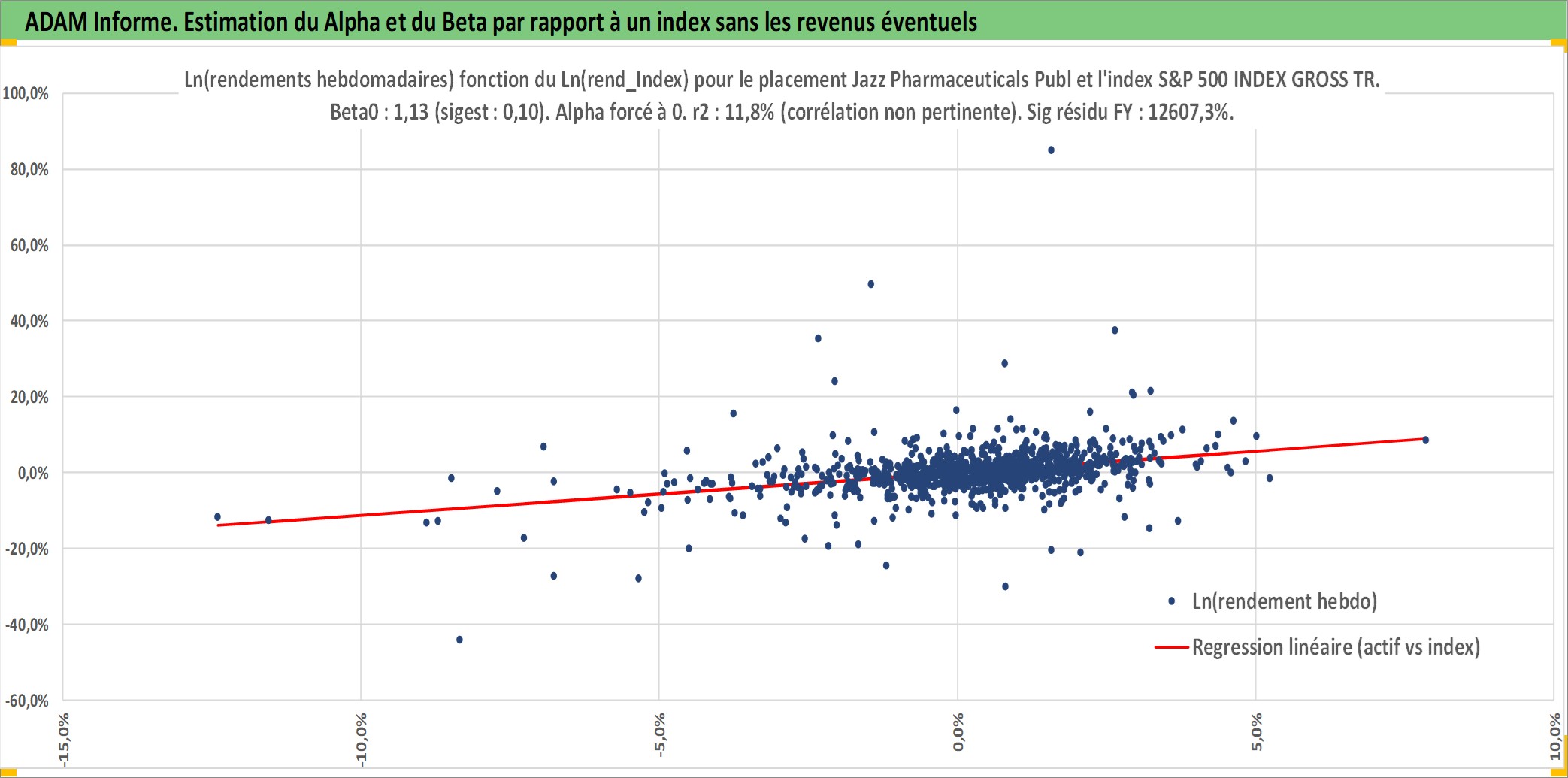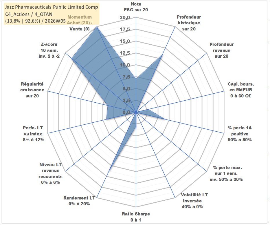 Site dédié aux investisseursPage dédiée sur site financeAnalyse des valorisations hebdomadaires de l'action Jazz Pharmaceuticals Public Limited Company. Cet actif est cote en USD. Les valorisations sont en contrevaleur EURO et couvrent les semaines 2007W22 a 2026W05. Les revenus de cet actif financier ne sont pas connus car non existants ou non disponibles sur le site Yahoo Finance. La note globale ESG de cet actif est estimee a 7.0 (apres rebasage entre 0 et 20).