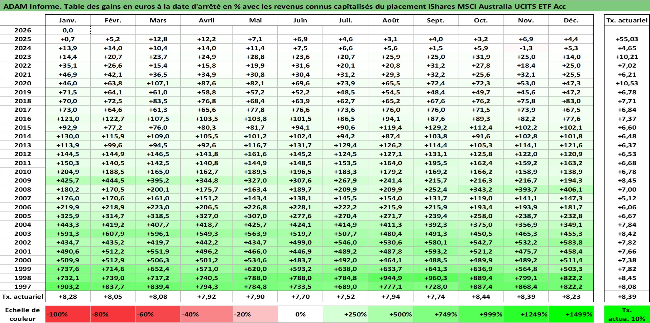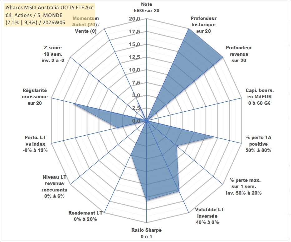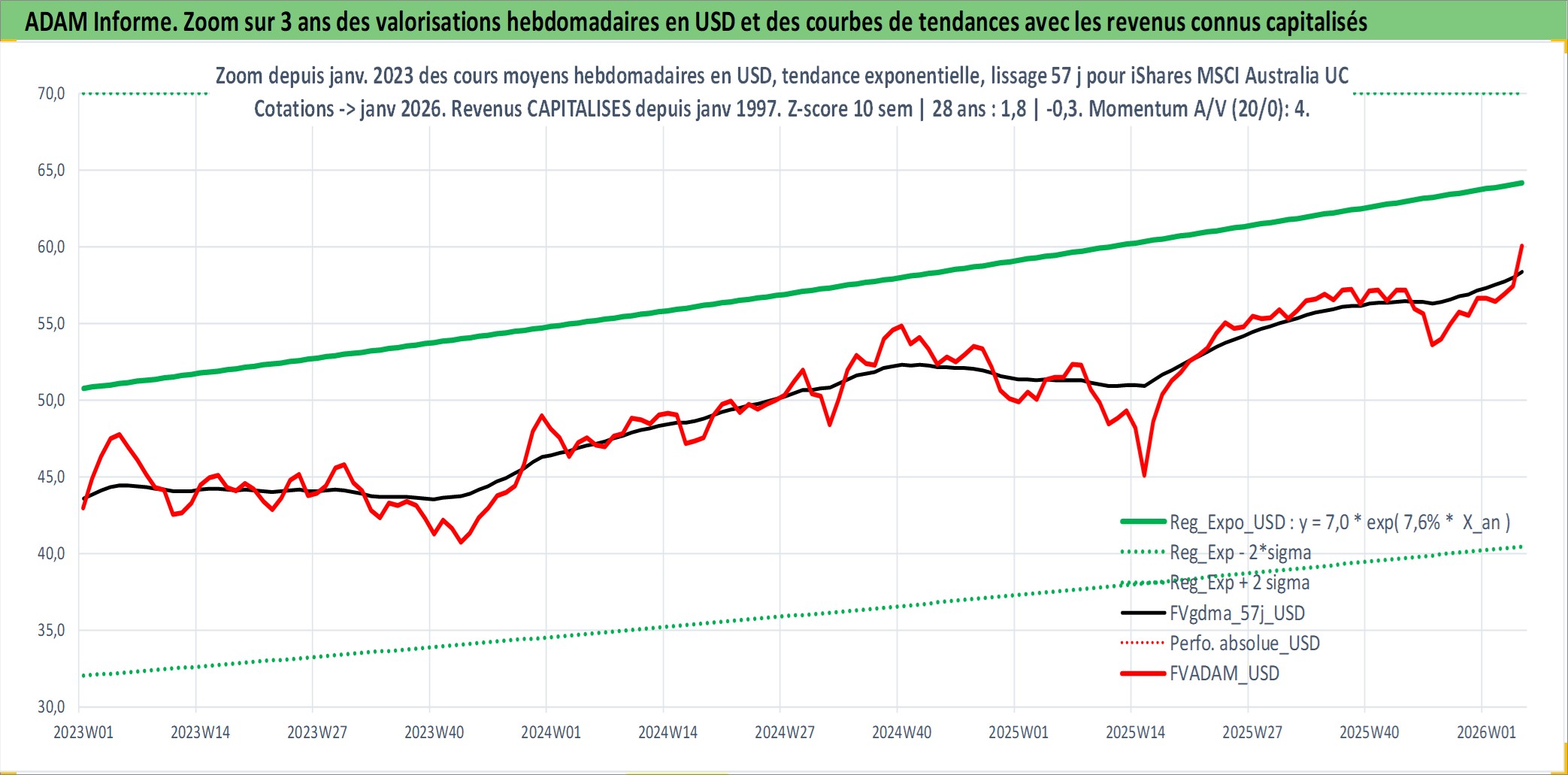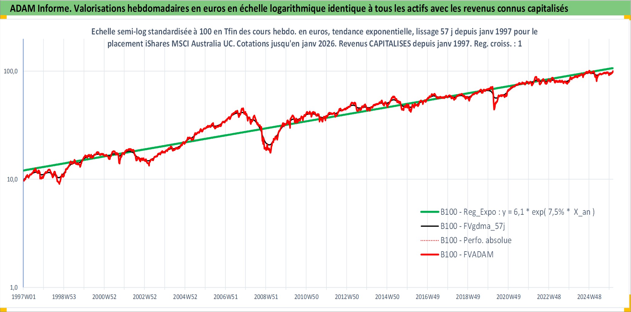 Site dédié aux investisseursPage dédiée sur site financeAnalyse des valorisations hebdomadaires du fonds iShares MSCI Australia UCITS ETF Acc. Cet actif est cote en USD. Les valorisations sont en contrevaleur EURO et couvrent les semaines 1997W01 a 2026W05. Les revenus de cet actif financier sont pris en compte depuis la semaine 1997W01. La note ESG de cet actif n'est pas connue.