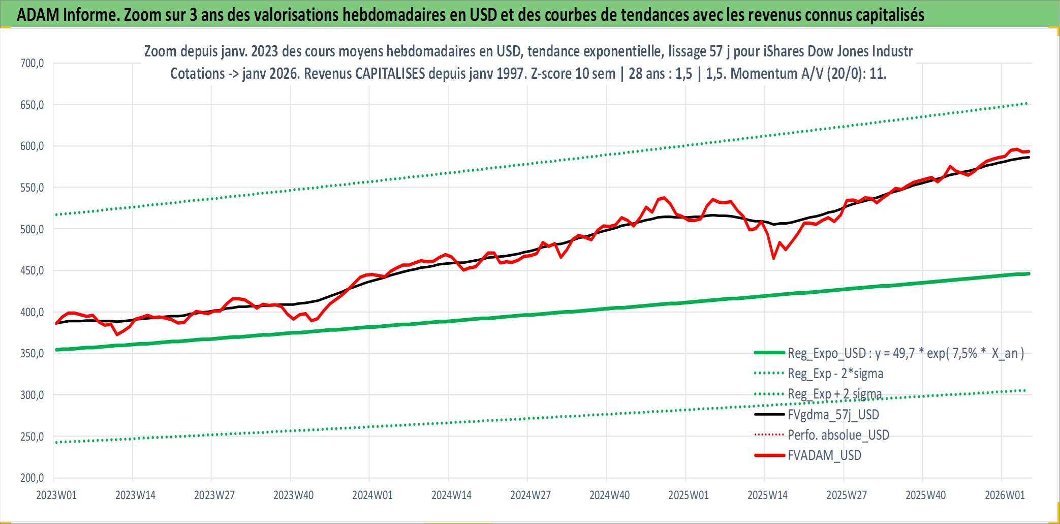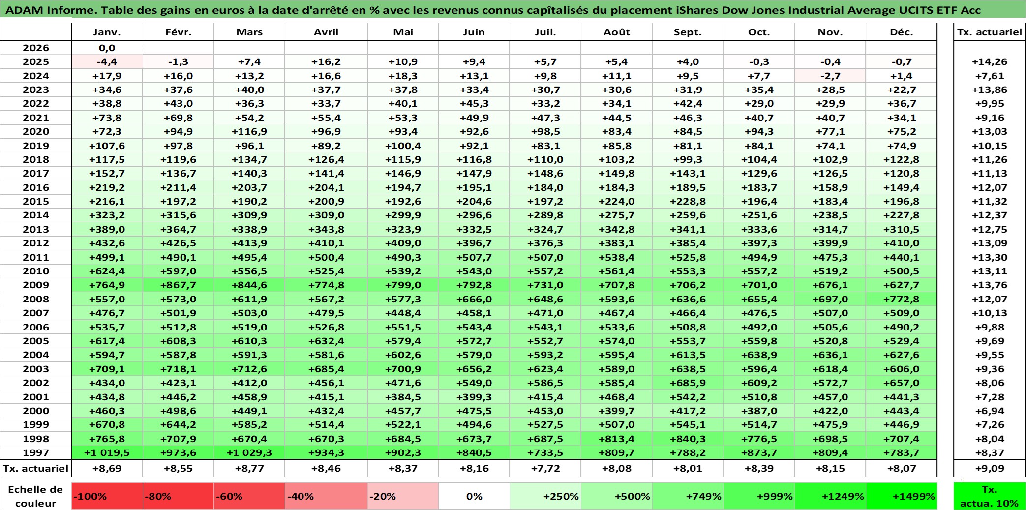 Site dédié aux investisseursPage dédiée sur site financeAnalyse des valorisations hebdomadaires du fonds iShares Dow Jones Industrial Average UCITS ETF Acc. Cet actif est cote en USD. Les valorisations sont en contrevaleur EURO et couvrent les semaines 1997W01 a 2026W05. Les revenus de cet actif financier sont pris en compte depuis la semaine 1997W01. La note ESG de cet actif n'est pas connue.