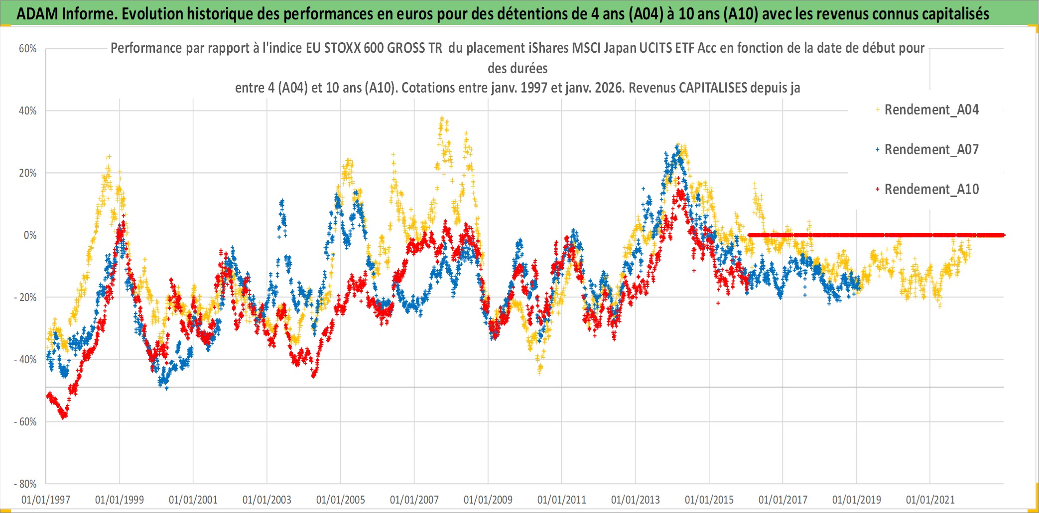 Site dédié aux investisseursPage dédiée sur site financeAnalyse des valorisations hebdomadaires du fonds iShares MSCI Japan UCITS ETF Acc. Cet actif est cote en USD. Les valorisations sont en contrevaleur EURO et couvrent les semaines 1997W01 a 2026W05. Les revenus de cet actif financier sont pris en compte depuis la semaine 1997W01. La note ESG de cet actif n'est pas connue.
