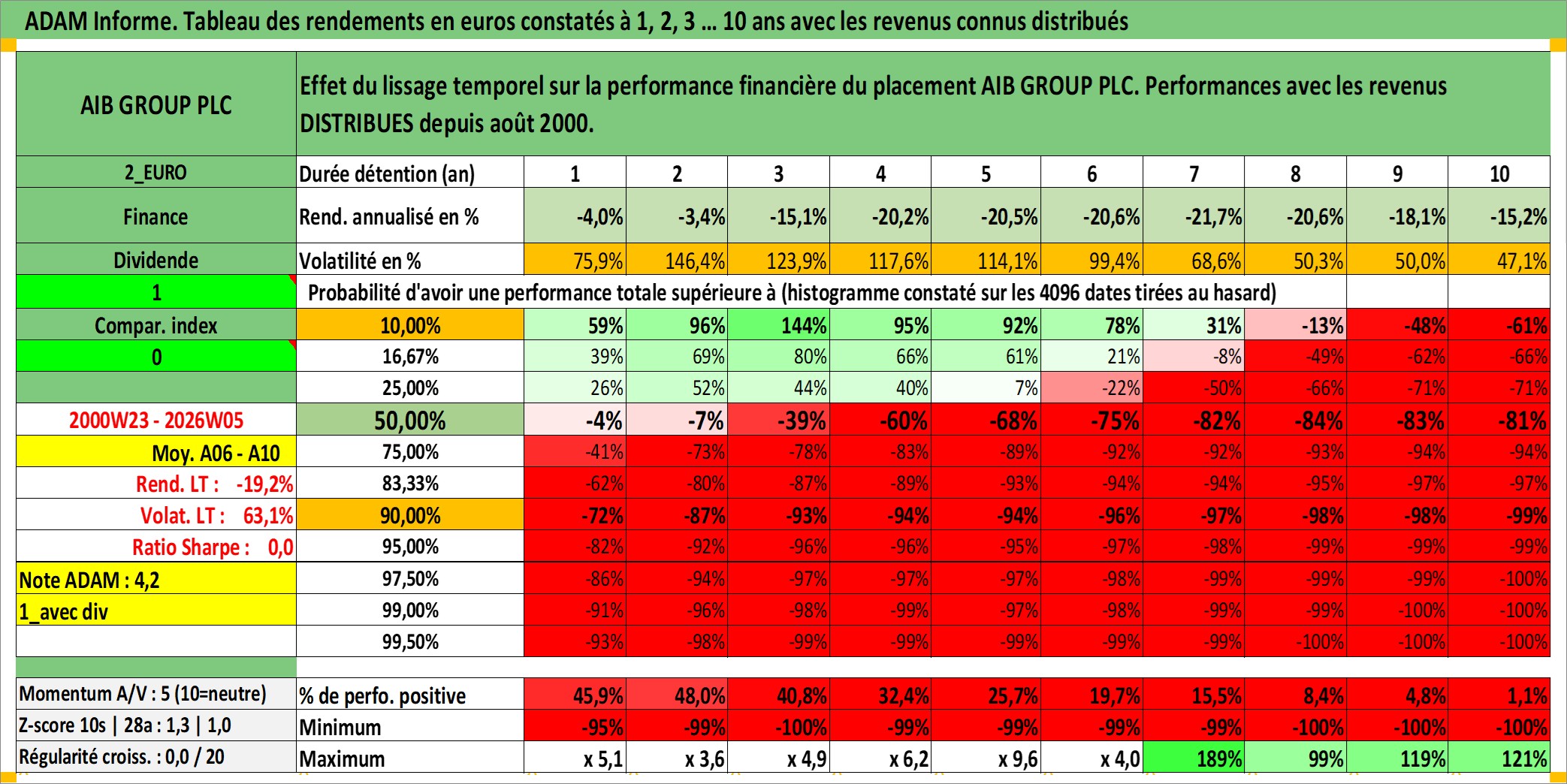 Site dédié aux investisseursPage dédiée sur site financeAnalyse des valorisations hebdomadaires de l'action AIB GROUP PLC. Cet actif est cote en EUR. Les valorisations couvrent les semaines 2000W23 a 2026W05. Les revenus de cet actif financier sont pris en compte depuis la semaine 2000W32. La note ESG de cet actif n'est pas connue.