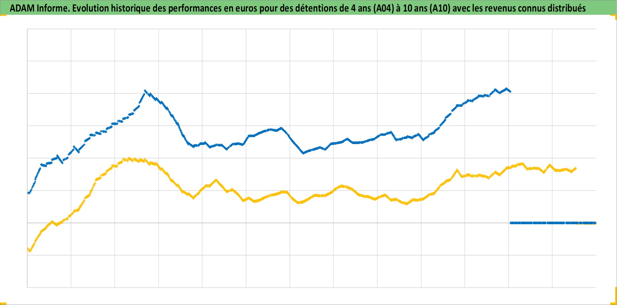 Site dédié aux investisseursPage dédiée sur site financeAnalyse des valorisations hebdomadaires de l'actif 1F_Agglo10kcentre_Appart_Ancien. Cet actif est cote en EUR. Les valorisations couvrent les semaines 1997W01 a 2026W05. Les loyers de cet actif immobilier sont pris egaux a 3,33% annuels de la valeur venale du logement.