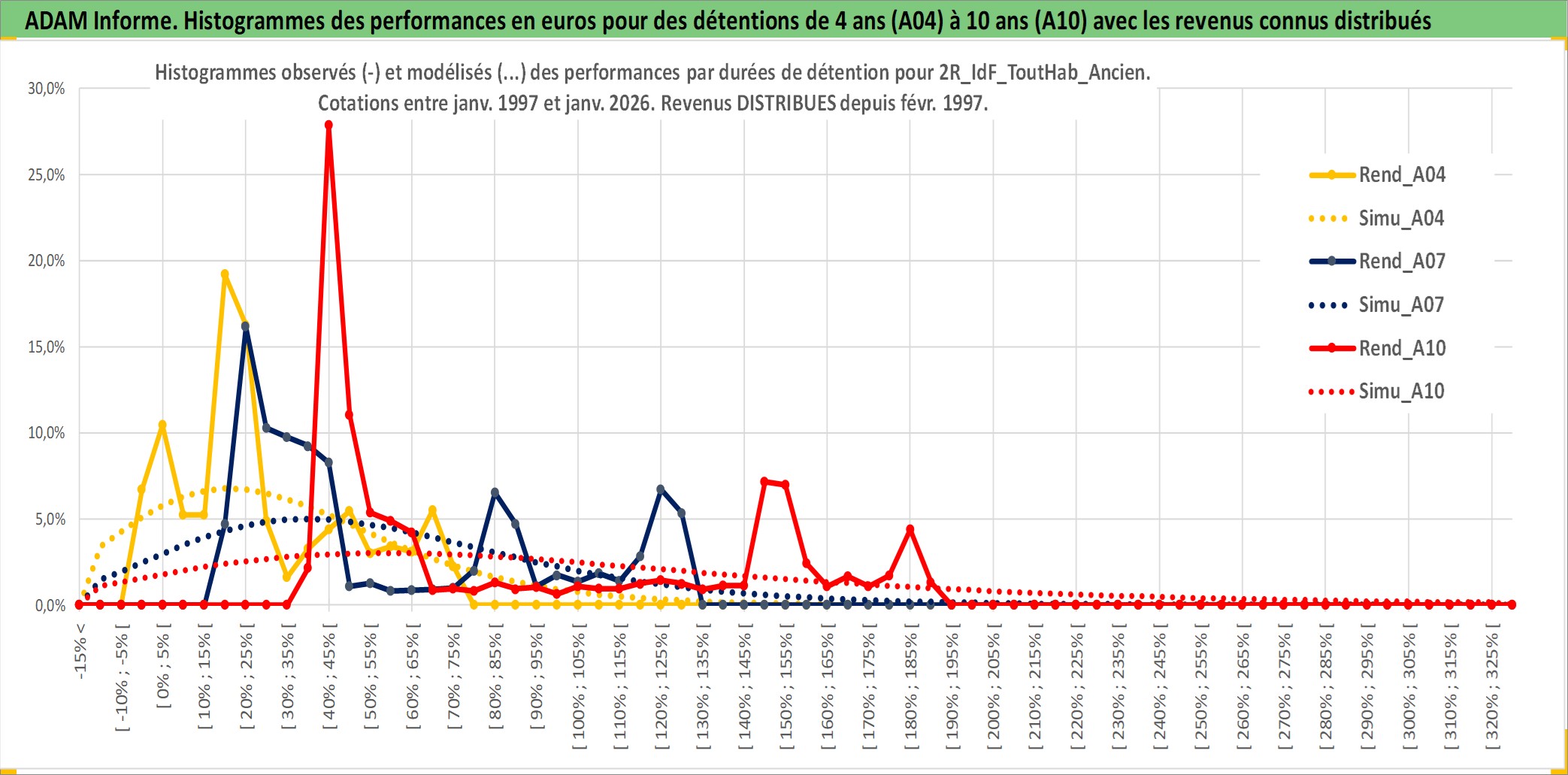 Site dédié aux investisseursPage dédiée sur site financeAnalyse des valorisations hebdomadaires de l'actif 2R_IdF_ToutHab_Ancien. Cet actif est cote en EUR. Les valorisations couvrent les semaines 1997W01 a 2026W05. Les loyers de cet actif immobilier sont pris egaux a 3,33% annuels de la valeur venale du logement.