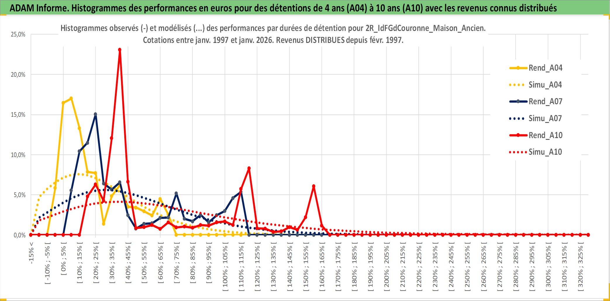 Site dédié aux investisseursPage dédiée sur site financeAnalyse des valorisations hebdomadaires de l'actif 2R_IdFGdCouronne_Maison_Ancien. Cet actif est cote en EUR. Les valorisations couvrent les semaines 1997W01 a 2026W05. Les loyers de cet actif immobilier sont pris egaux a 3,33% annuels de la valeur venale du logement.