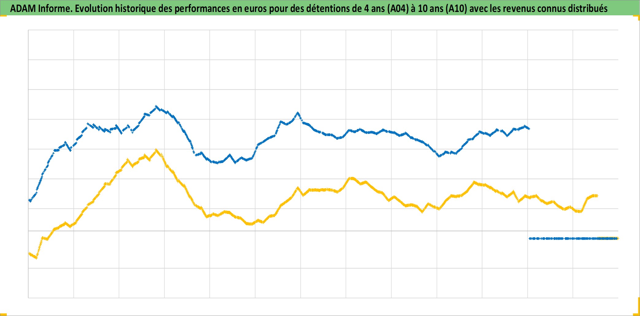 Site dédié aux investisseursPage dédiée sur site financeAnalyse des valorisations hebdomadaires de l'actif 2R_RhA_Appart_Ancien. Cet actif est cote en EUR. Les valorisations couvrent les semaines 1997W01 a 2026W05. Les loyers de cet actif immobilier sont pris egaux a 3,33% annuels de la valeur venale du logement.