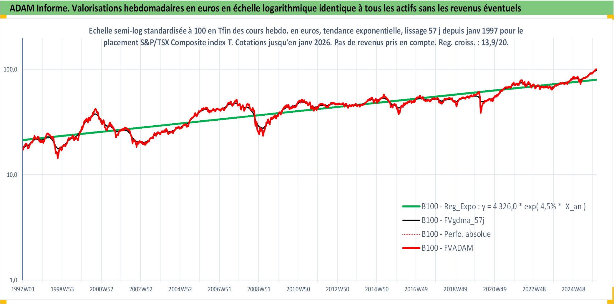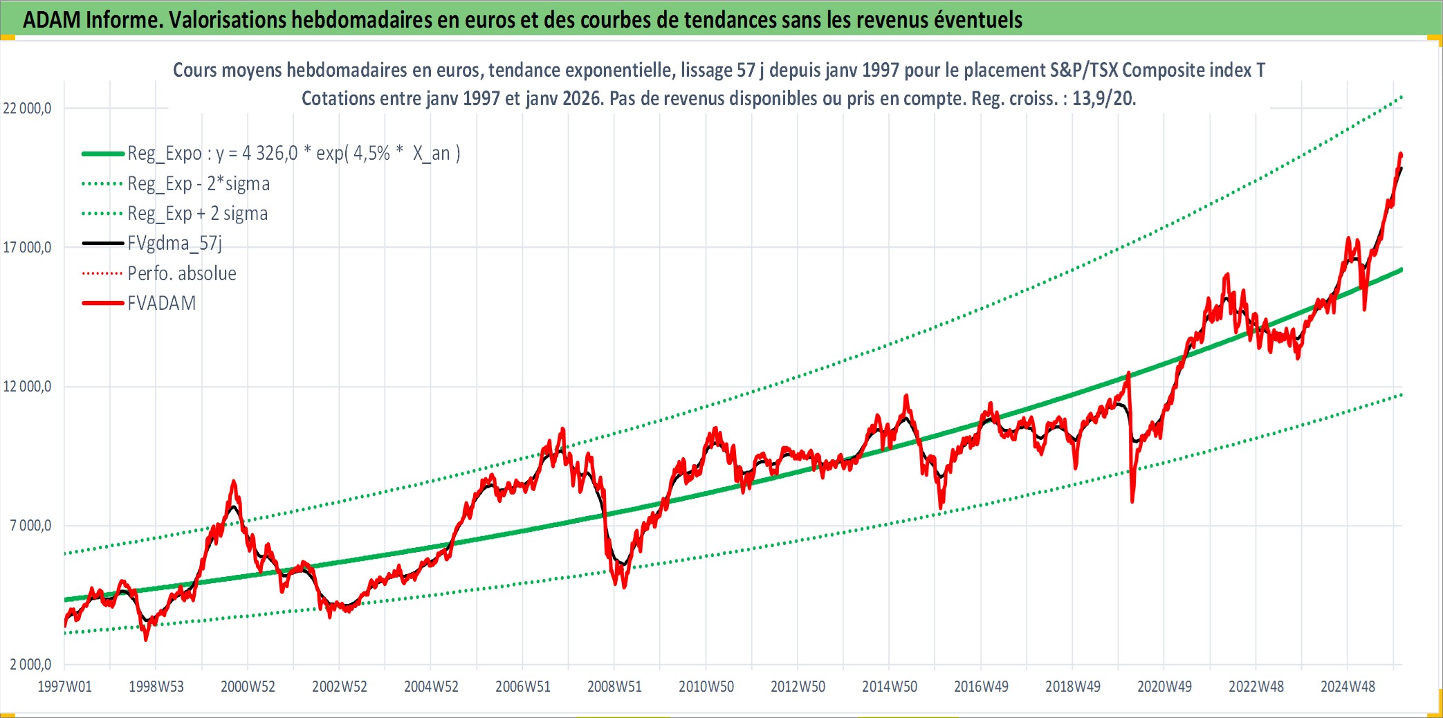 Site dédié aux investisseursPage dédiée sur site financeAnalyse des valorisations hebdomadaires de l'actif S&P/TSX Composite index Toronto. Cet actif est cote en CAD. Les valorisations sont en contrevaleur EURO et couvrent les semaines 1997W01 a 2026W05. Les revenus de cet actif financier ne sont pas connus car non existants ou non disponibles sur le site Yahoo Finance. La note ESG de cet actif n'est pas connue.