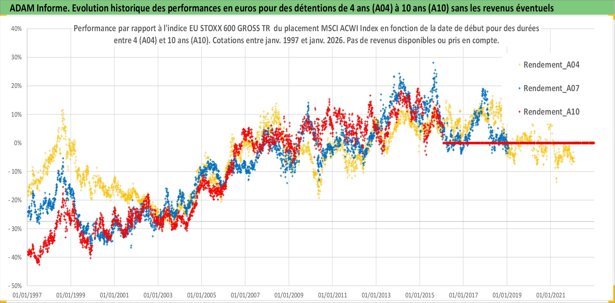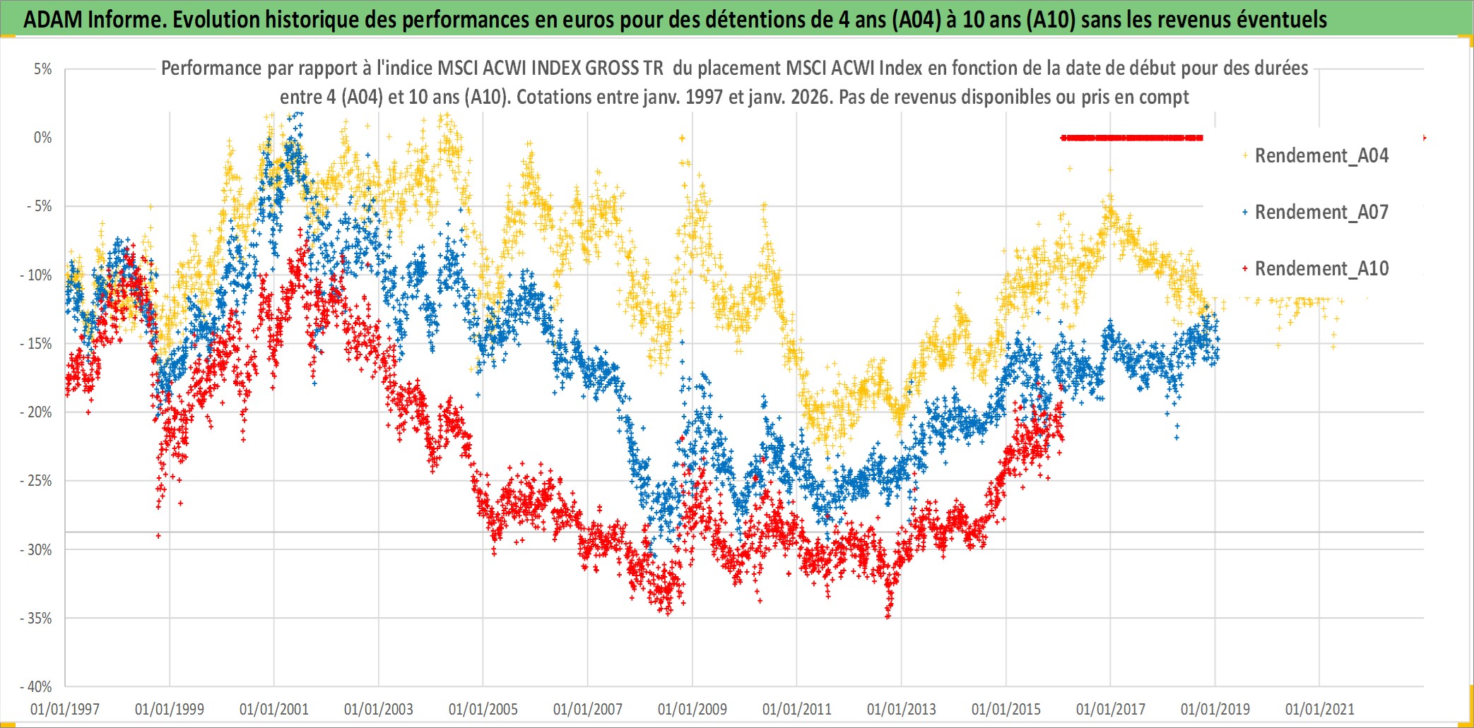 Site dédié aux investisseursPage dédiée sur site financeAnalyse des valorisations hebdomadaires de l'actif MSCI ACWI Index. Cet actif est cote en USD. Les valorisations sont en contrevaleur EURO et couvrent les semaines 1997W01 a 2026W05. Les revenus de cet actif financier ne sont pas connus car non existants ou non disponibles sur le site Yahoo Finance. La note ESG de cet actif n'est pas connue.