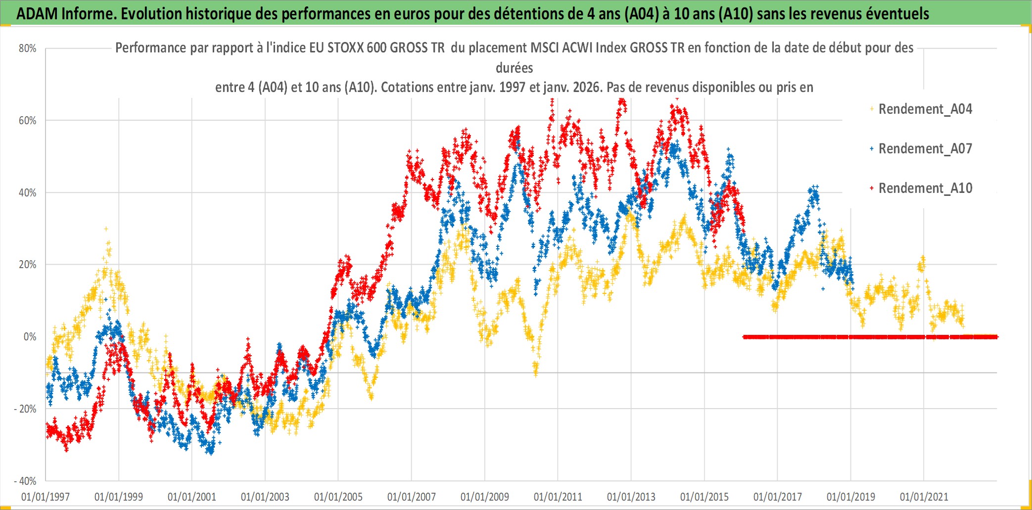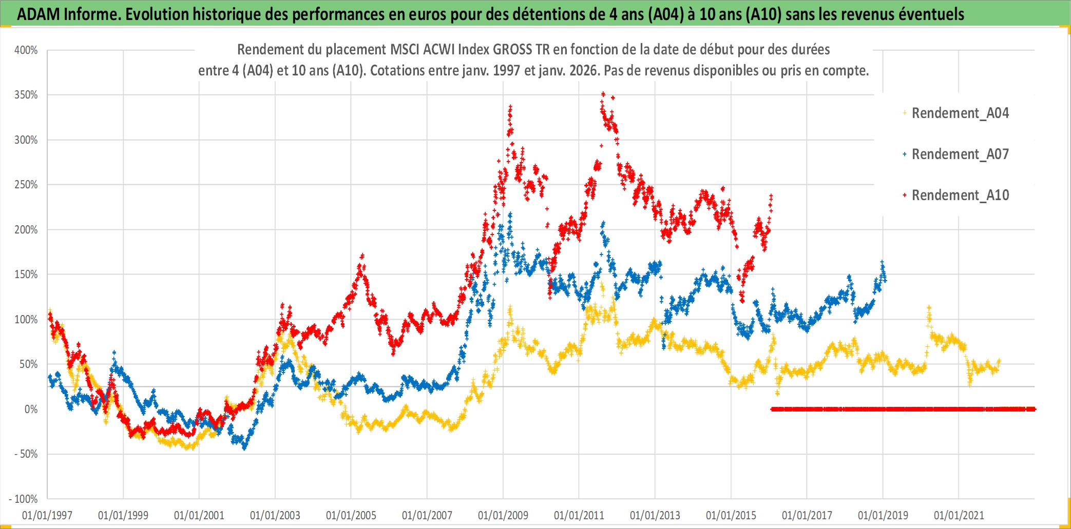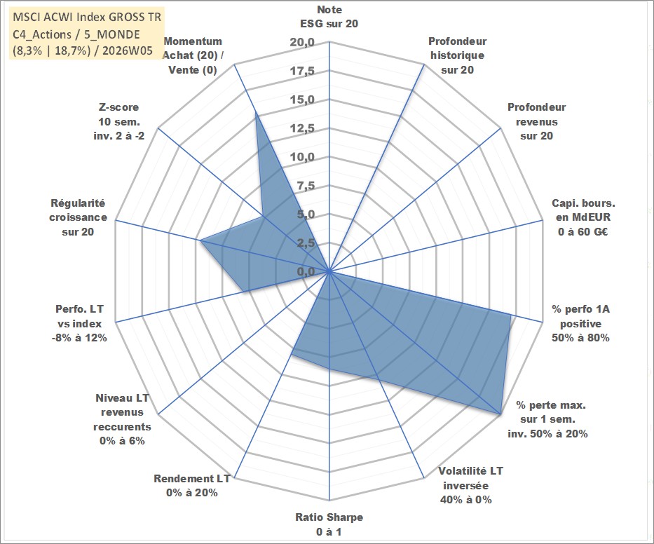 Site dédié aux investisseursPage dédiée sur site financeAnalyse des valorisations hebdomadaires de l'actif MSCI ACWI Index GROSS TR. Cet actif est cote en USD. Les valorisations sont en contrevaleur EURO et couvrent les semaines 1997W01 a 2026W05. Les revenus de cet actif financier ne sont pas connus car non existants ou non disponibles sur le site Yahoo Finance. La note ESG de cet actif n'est pas connue.
