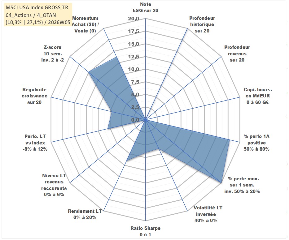 Site dédié aux investisseursPage dédiée sur site financeAnalyse des valorisations hebdomadaires de l'actif MSCI USA Index GROSS TR. Cet actif est cote en USD. Les valorisations sont en contrevaleur EURO et couvrent les semaines 1997W01 a 2026W05. Les revenus de cet actif financier ne sont pas connus car non existants ou non disponibles sur le site Yahoo Finance. La note ESG de cet actif n'est pas connue.