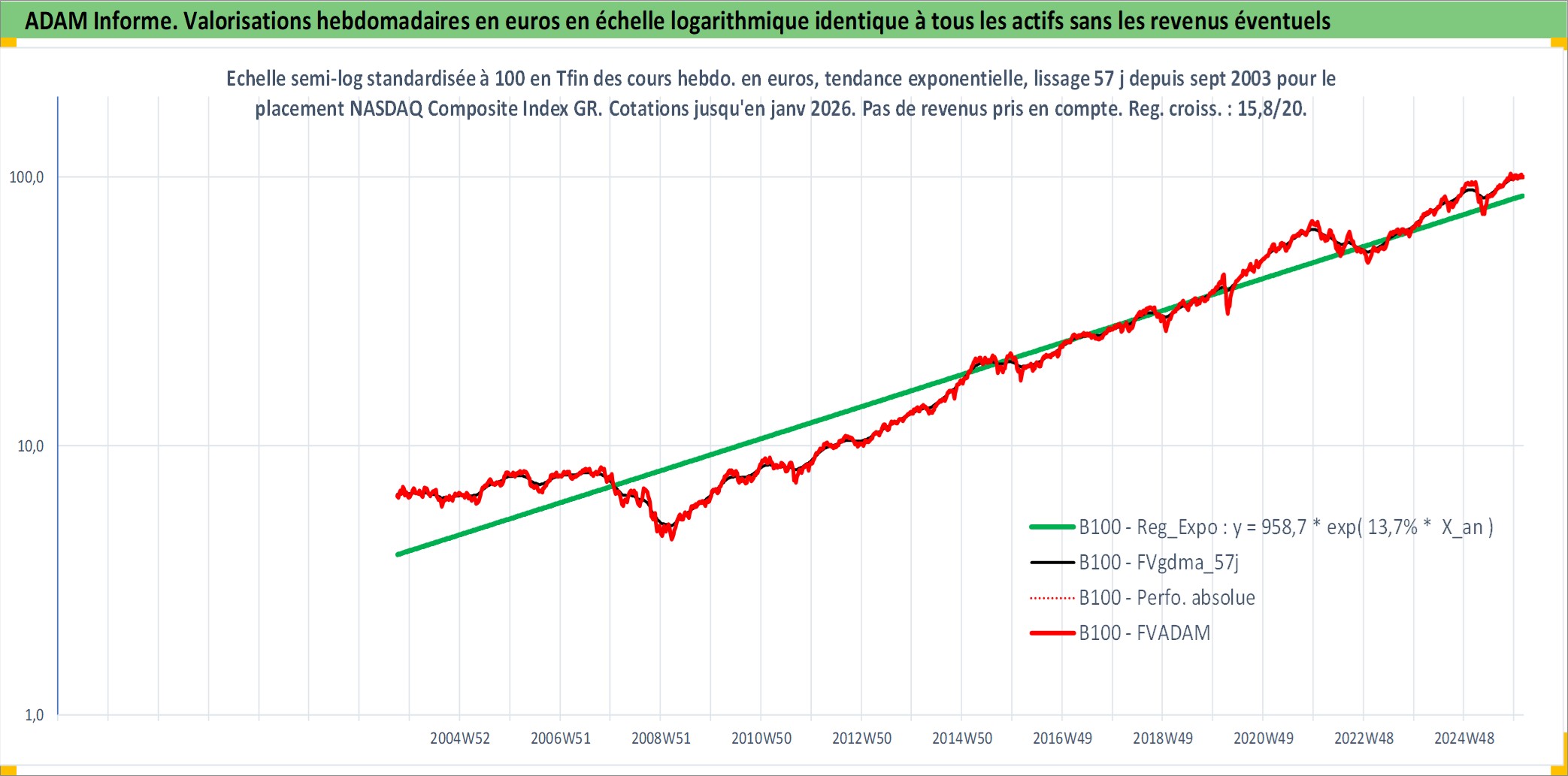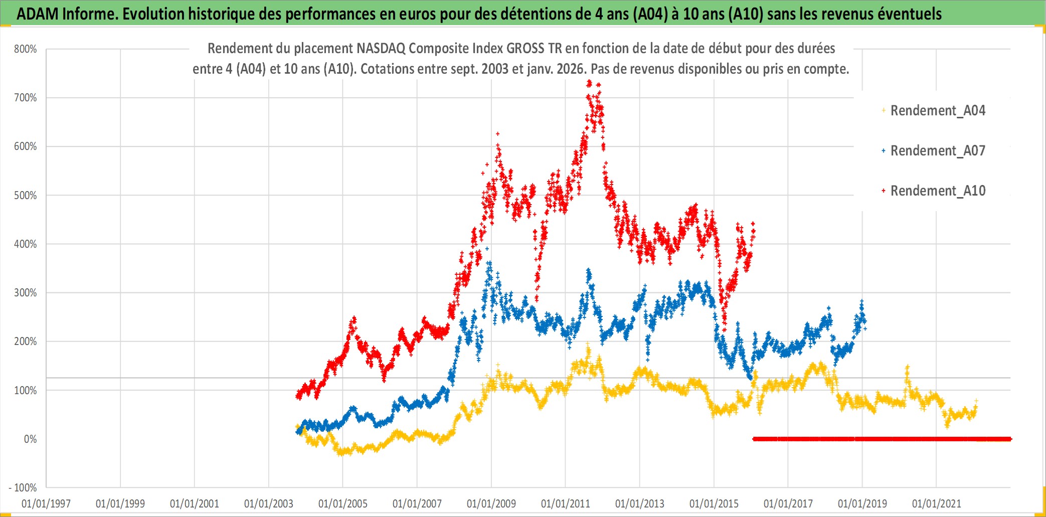 Site dédié aux investisseursPage dédiée sur site financeAnalyse des valorisations hebdomadaires de l'actif NASDAQ Composite Index GROSS TR. Cet actif est cote en USD. Les valorisations sont en contrevaleur EURO et couvrent les semaines 2003W39 a 2026W05. Les revenus de cet actif financier ne sont pas connus car non existants ou non disponibles sur le site Yahoo Finance. La note ESG de cet actif n'est pas connue.