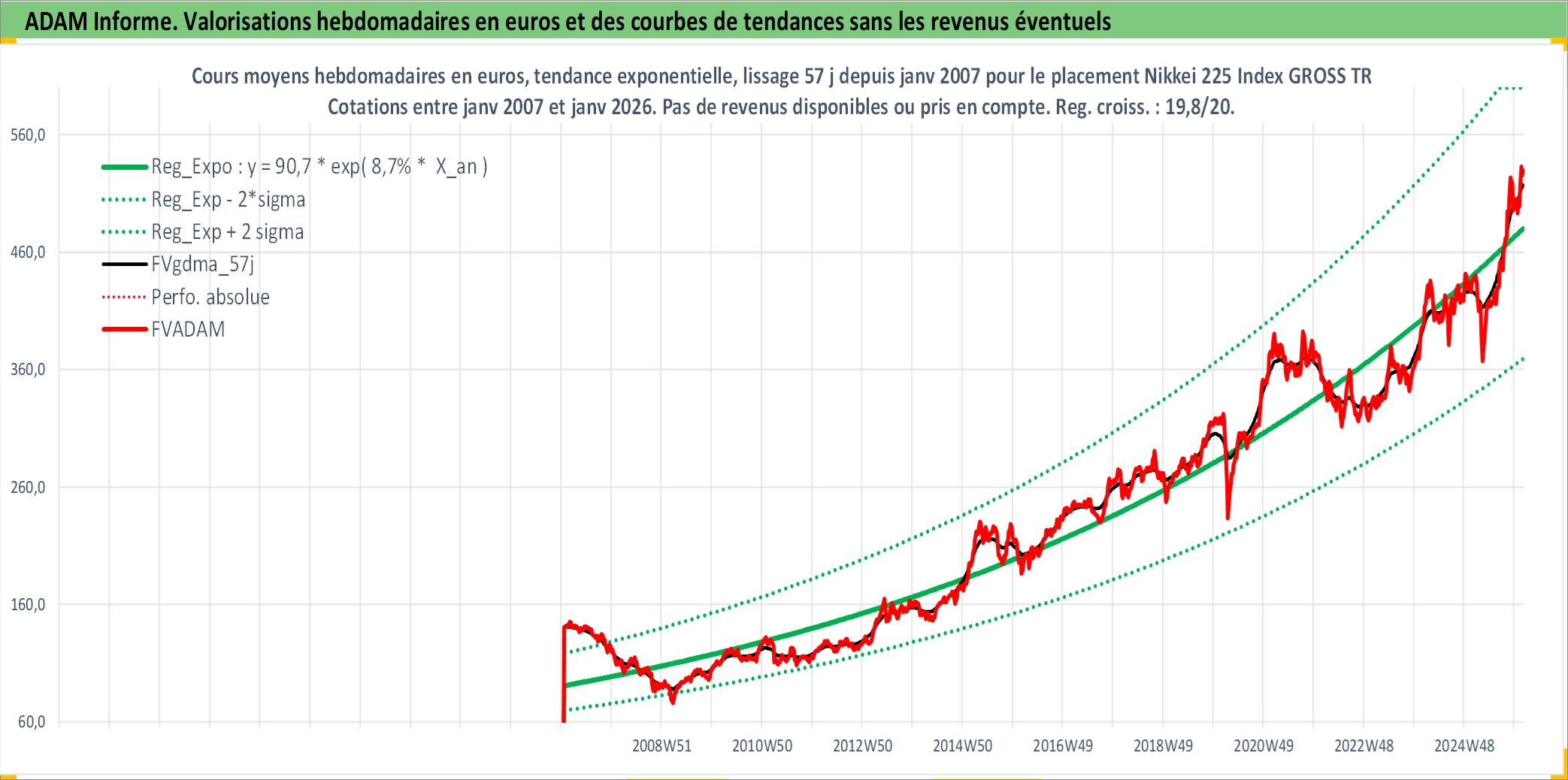 Site dédié aux investisseursPage dédiée sur site financeAnalyse des valorisations hebdomadaires de l'actif Nikkei 225 Index GROSS TR. Cet actif est cote en JPY. Les valorisations sont en contrevaleur EURO et couvrent les semaines 2007W02 a 2026W05. Les revenus de cet actif financier ne sont pas connus car non existants ou non disponibles sur le site Yahoo Finance. La note ESG de cet actif n'est pas connue.