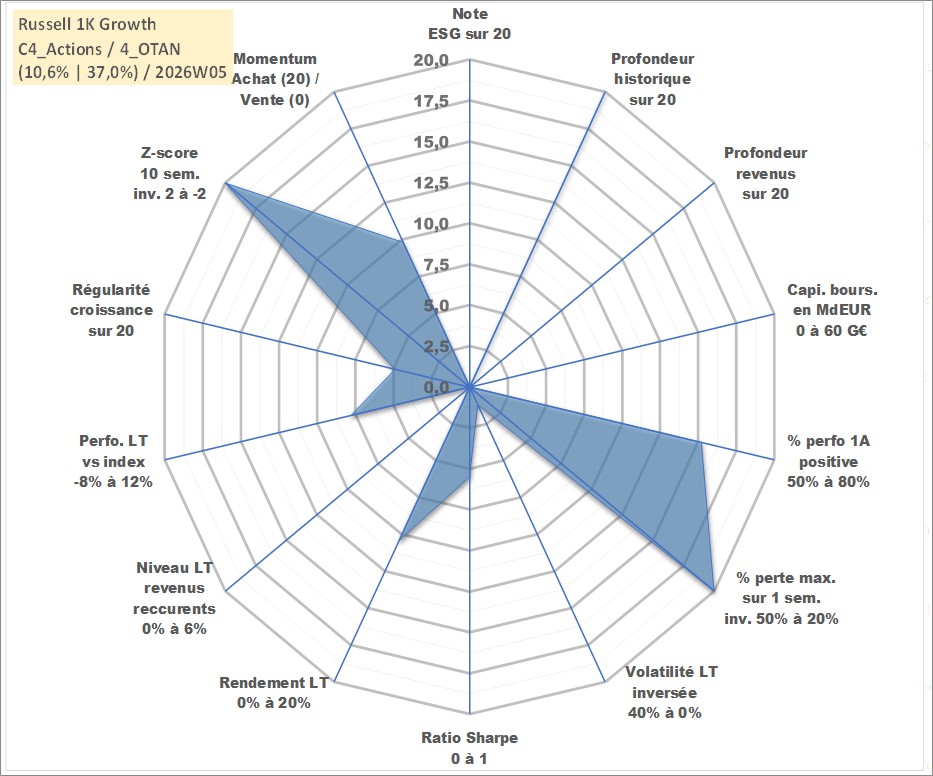 Site dédié aux investisseursPage dédiée sur site financeAnalyse des valorisations hebdomadaires de l'actif Russell 1K Growth. Cet actif est cote en USD. Les valorisations sont en contrevaleur EURO et couvrent les semaines 1997W01 a 2026W05. Les revenus de cet actif financier ne sont pas connus car non existants ou non disponibles sur le site Yahoo Finance. La note ESG de cet actif n'est pas connue.