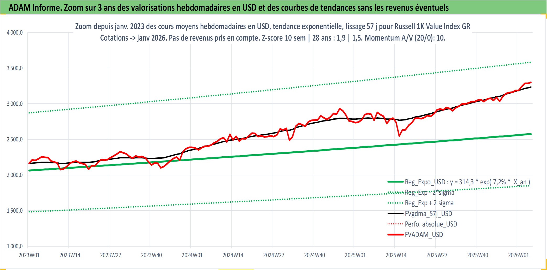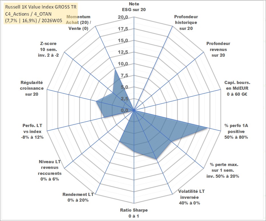 Site dédié aux investisseursPage dédiée sur site financeAnalyse des valorisations hebdomadaires de l'actif Russell 1K Value Index GROSS TR. Cet actif est cote en USD. Les valorisations sont en contrevaleur EURO et couvrent les semaines 1997W01 a 2026W05. Les revenus de cet actif financier ne sont pas connus car non existants ou non disponibles sur le site Yahoo Finance. La note ESG de cet actif n'est pas connue.