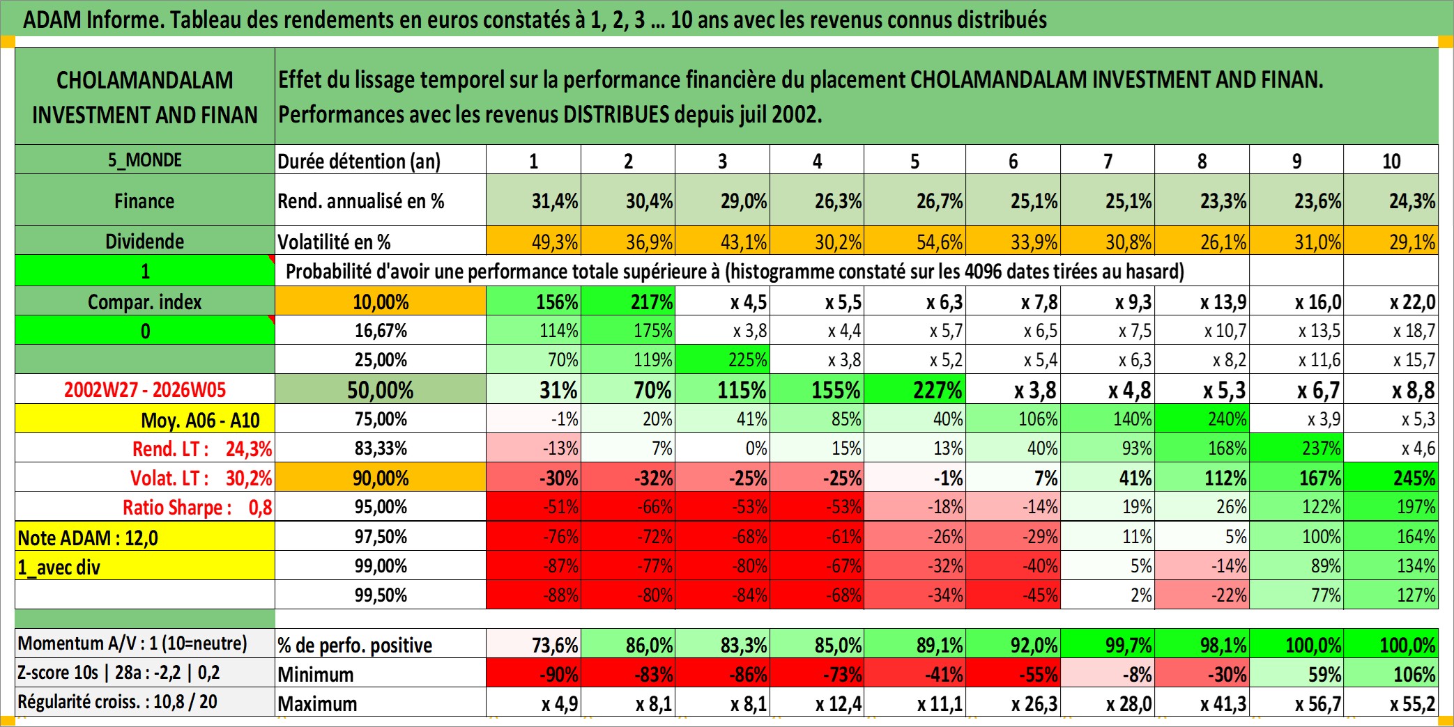 Site dédié aux investisseursPage dédiée sur site financeAnalyse des valorisations hebdomadaires de l'action CHOLAMANDALAM INVESTMENT AND FINAN. Cet actif est cote en INR. Les valorisations sont en contrevaleur EURO et couvrent les semaines 2002W27 a 2026W05. Les revenus de cet actif financier sont pris en compte depuis la semaine 2002W28. La note ESG de cet actif n'est pas connue.
