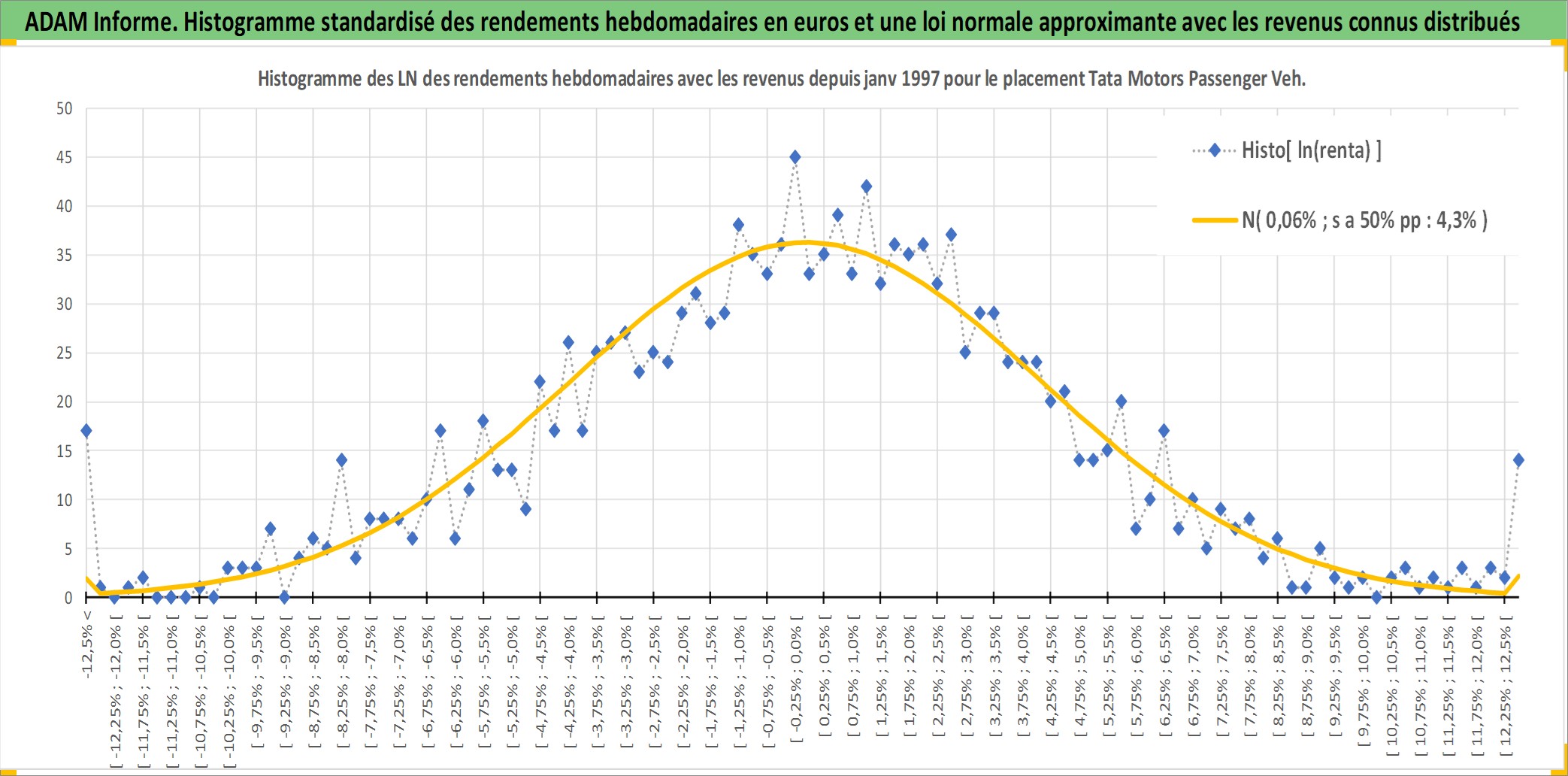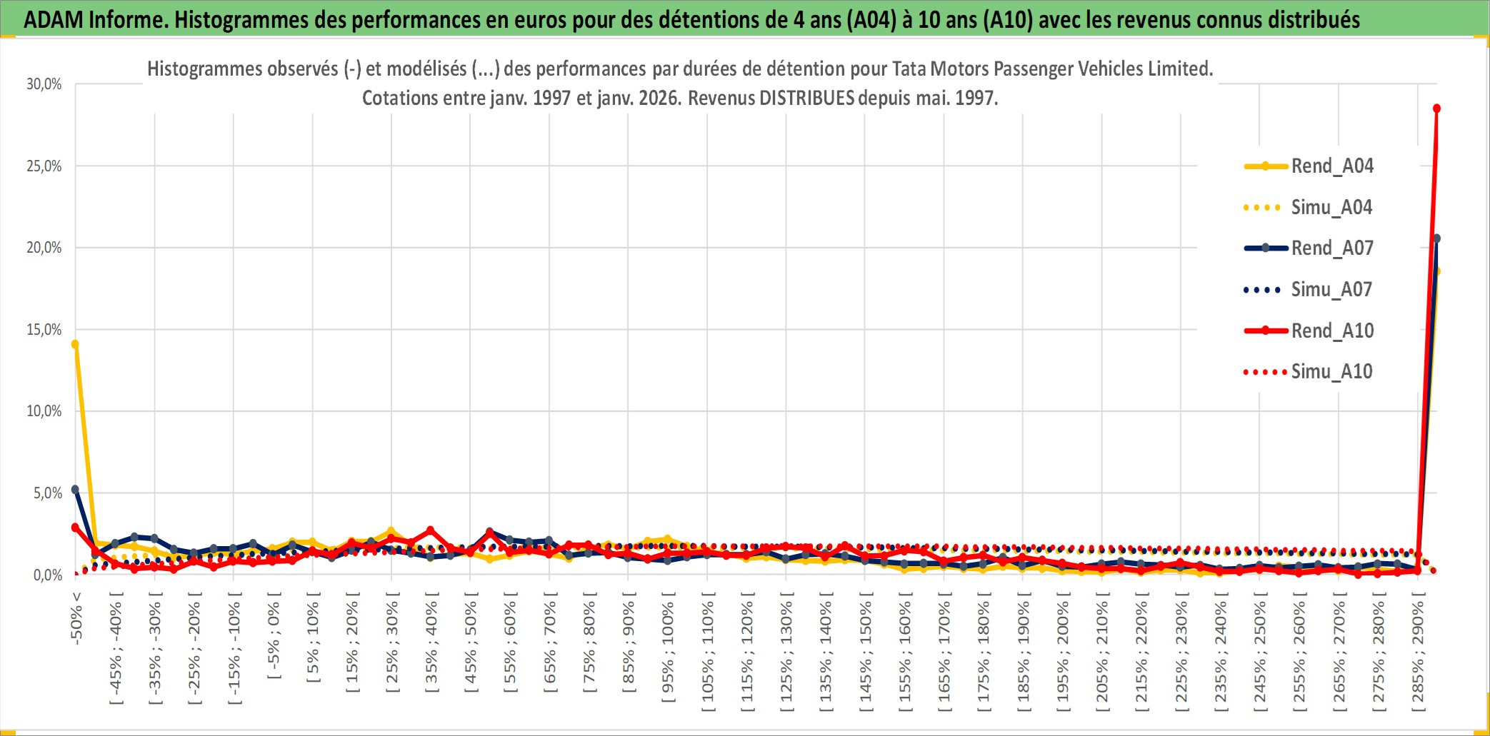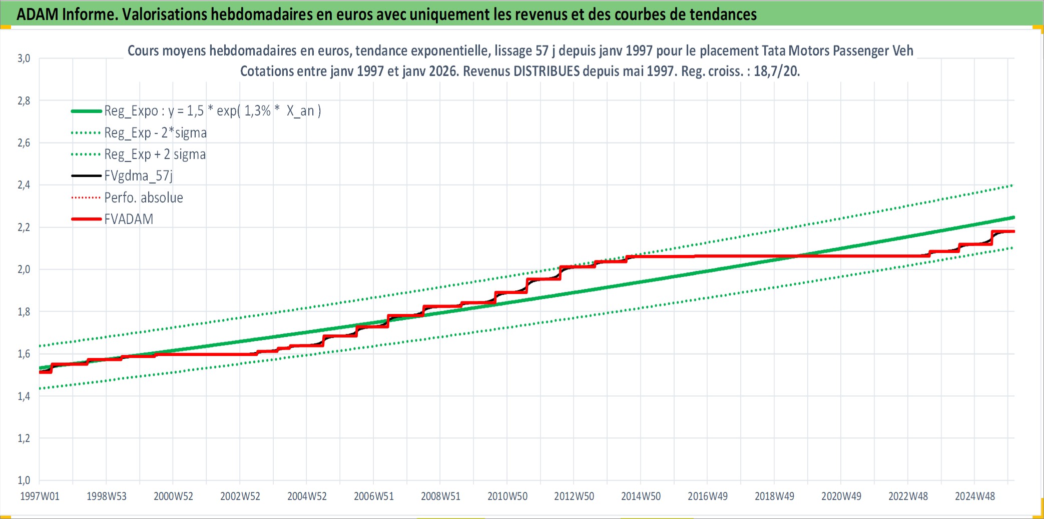 Site dédié aux investisseursPage dédiée sur site financeAnalyse des valorisations hebdomadaires de l'action Tata Motors Passenger Vehicles Limited. Cet actif est cote en INR. Les valorisations sont en contrevaleur EURO et couvrent les semaines 1997W01 a 2026W05. Les revenus de cet actif financier sont pris en compte depuis la semaine 1997W20. La note globale ESG de cet actif est estimee a 5.0 (apres rebasage entre 0 et 20).