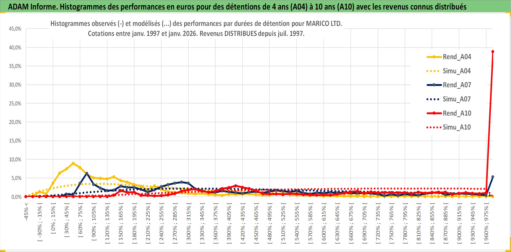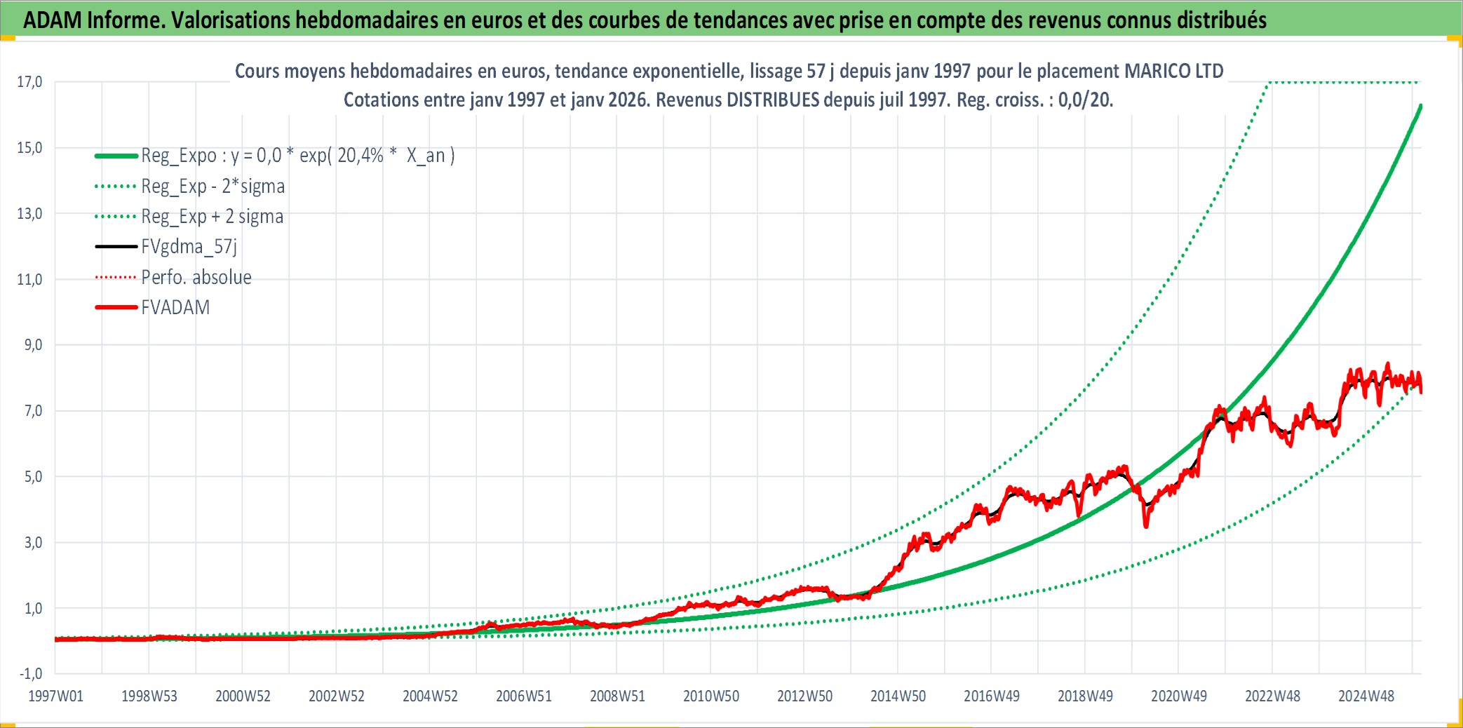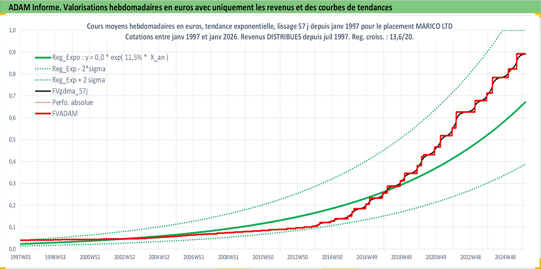Site dédié aux investisseursPage dédiée sur site financeAnalyse des valorisations hebdomadaires de l'action MARICO LTD. Cet actif est cote en INR. Les valorisations sont en contrevaleur EURO et couvrent les semaines 1997W01 a 2026W05. Les revenus de cet actif financier sont pris en compte depuis la semaine 1997W31. La note globale ESG de cet actif est estimee a 7.0 (apres rebasage entre 0 et 20).