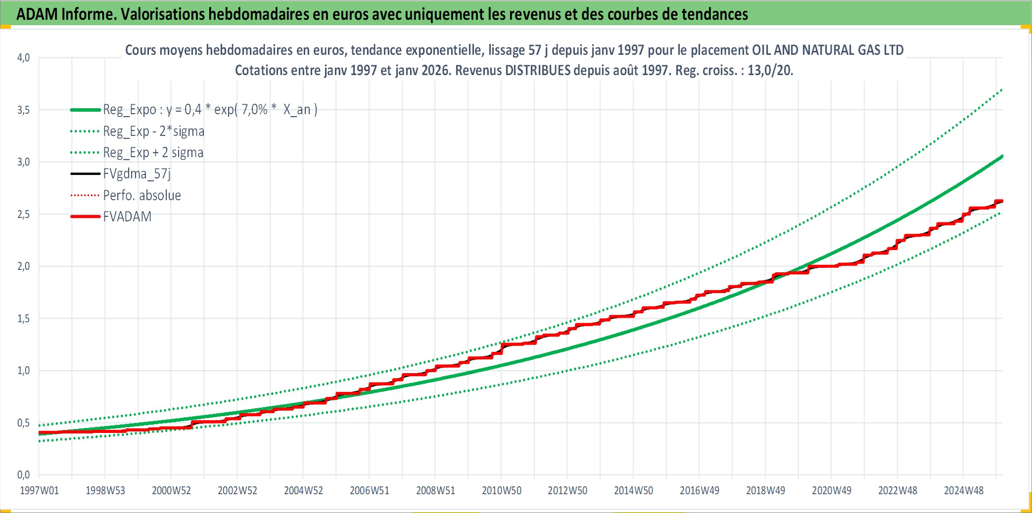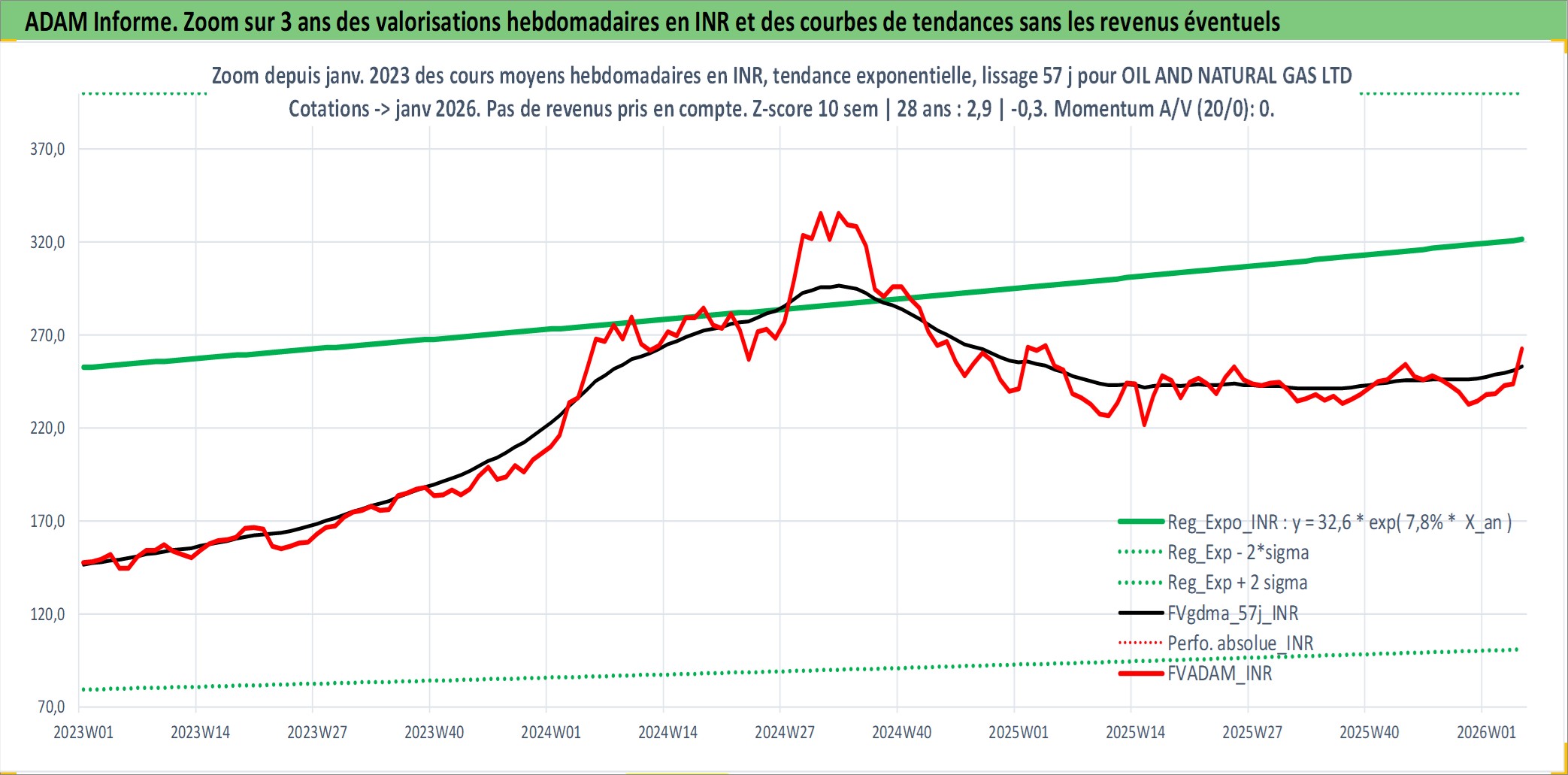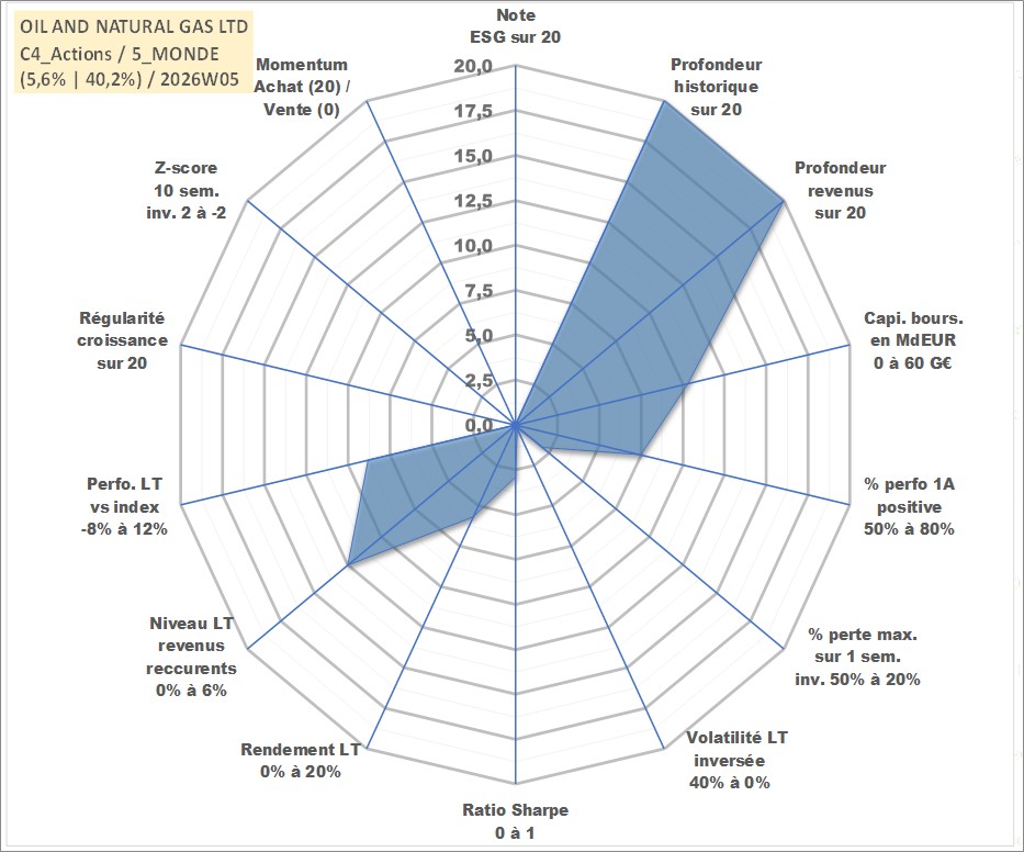 Site dédié aux investisseursPage dédiée sur site financeAnalyse des valorisations hebdomadaires de l'action OIL AND NATURAL GAS LTD. Cet actif est cote en INR. Les valorisations sont en contrevaleur EURO et couvrent les semaines 1997W01 a 2026W05. Les revenus de cet actif financier sont pris en compte depuis la semaine 1997W35. La note ESG de cet actif n'est pas connue.