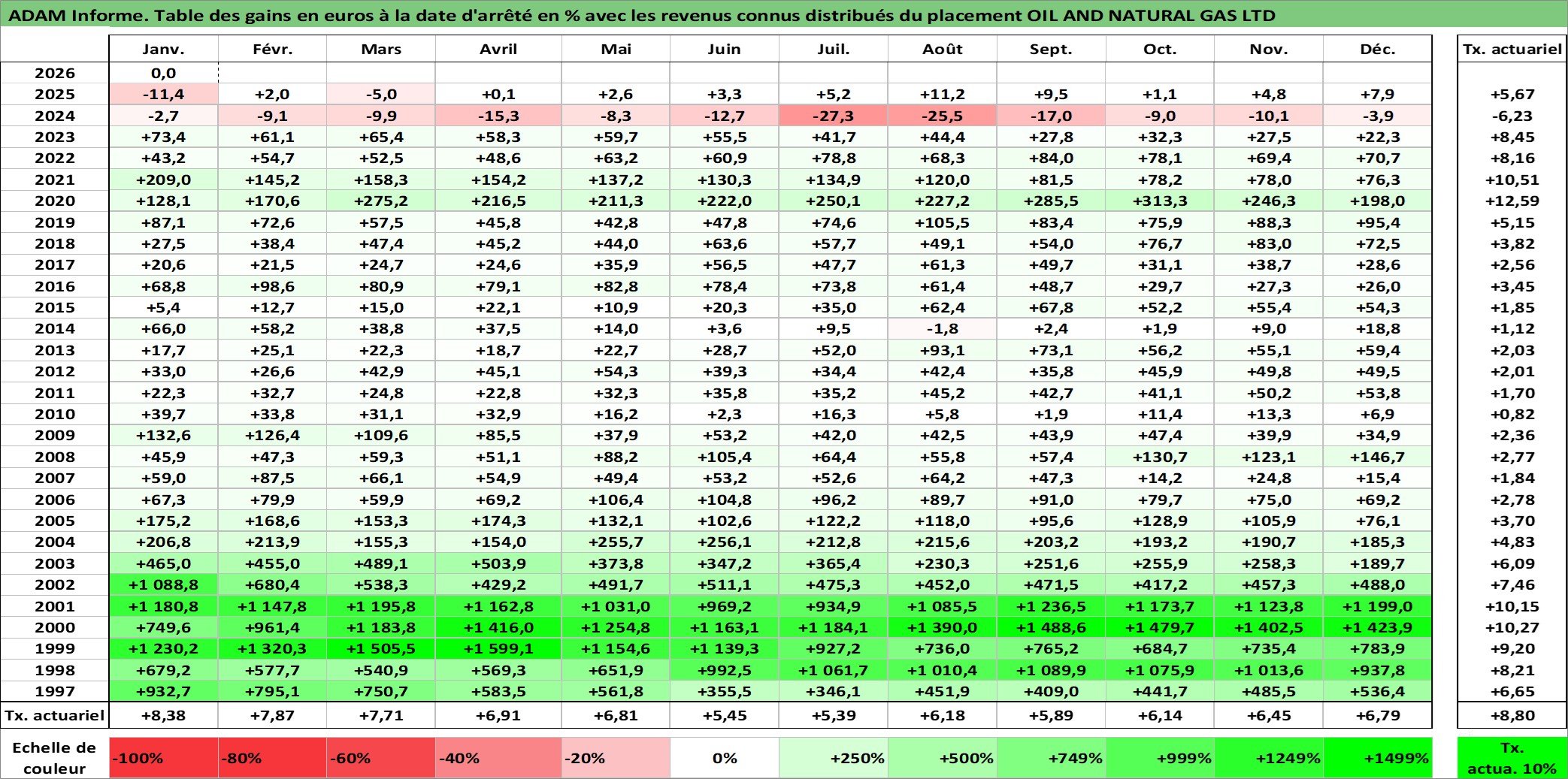 Dernière perfo 1 an en %
