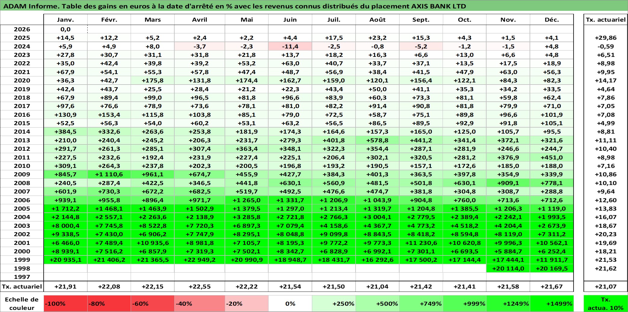Dernière perfo 1 an en %