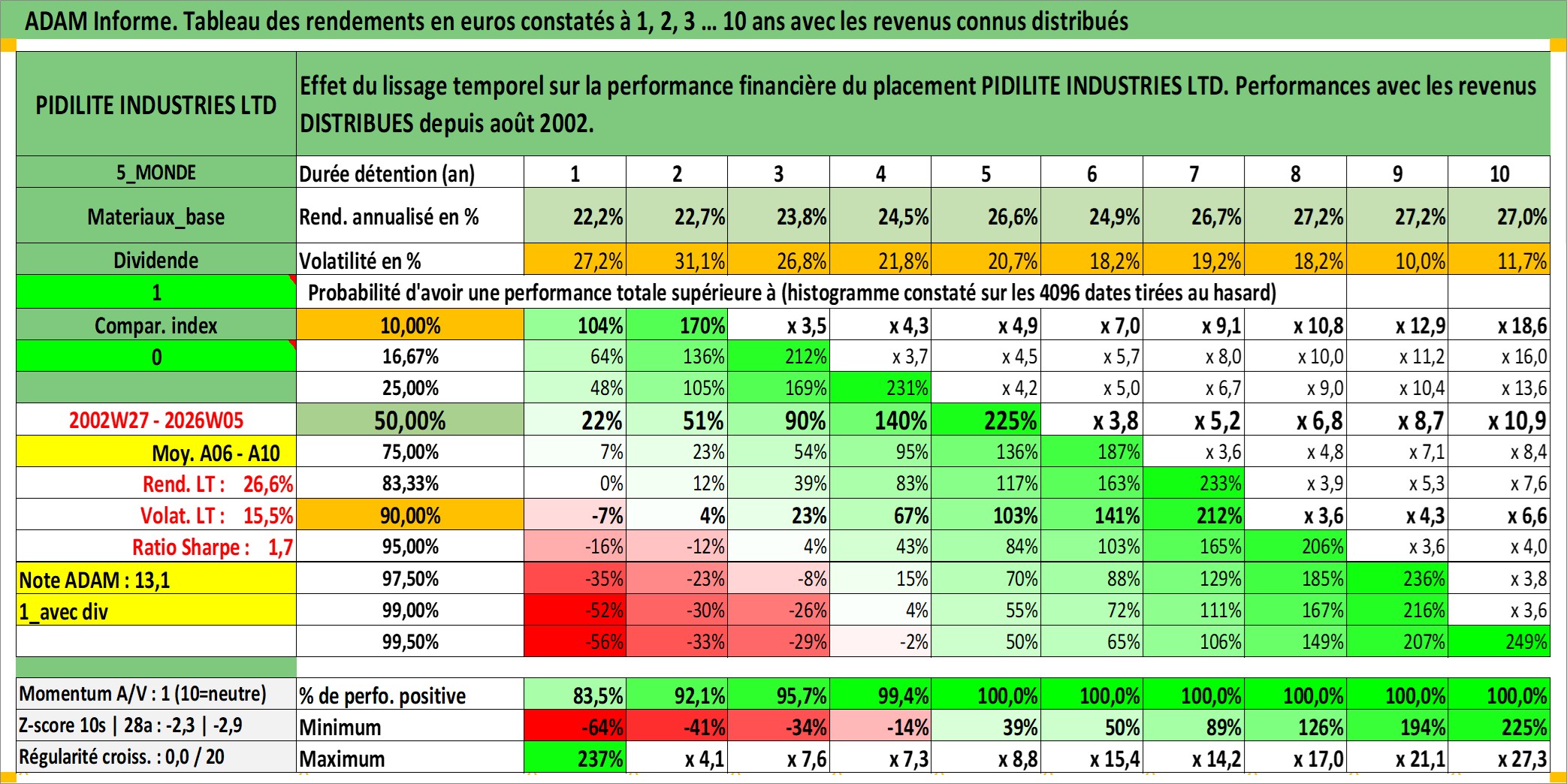 Dernière perfo 10 ans en %
