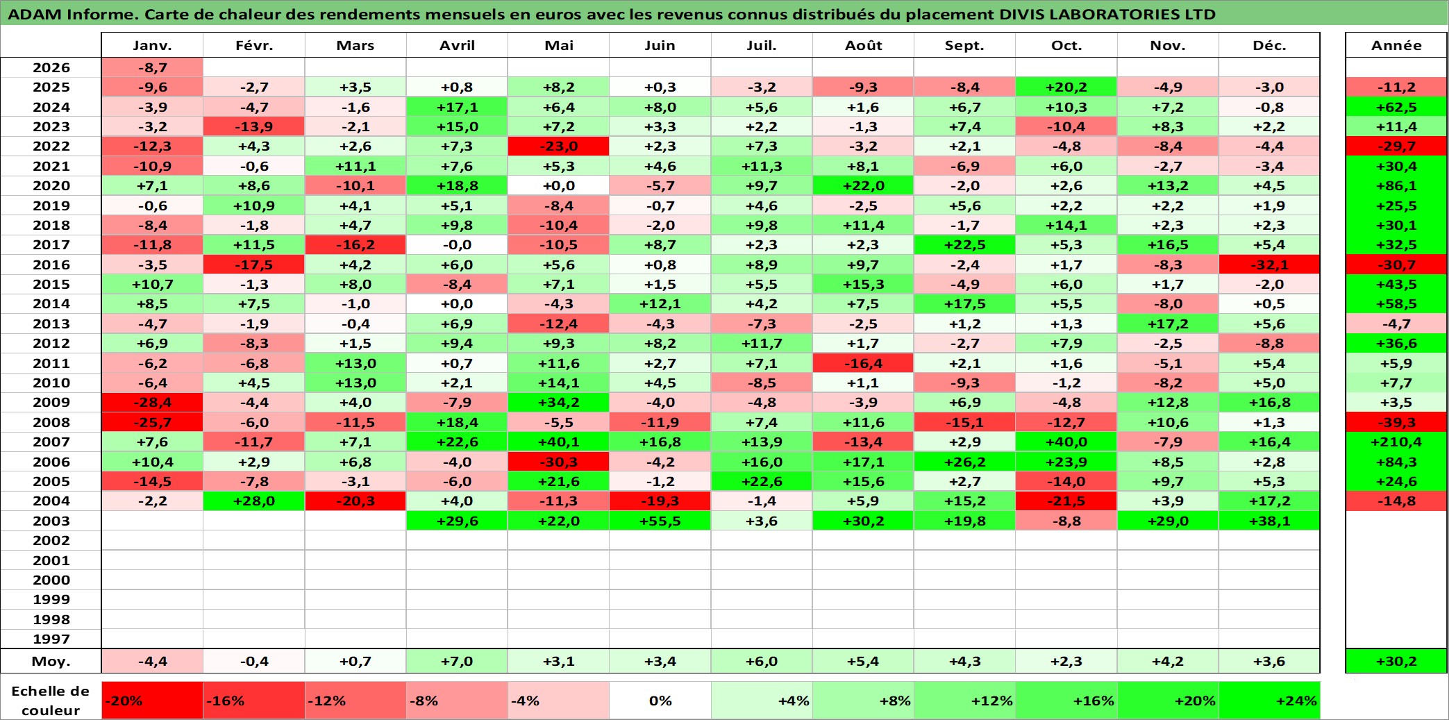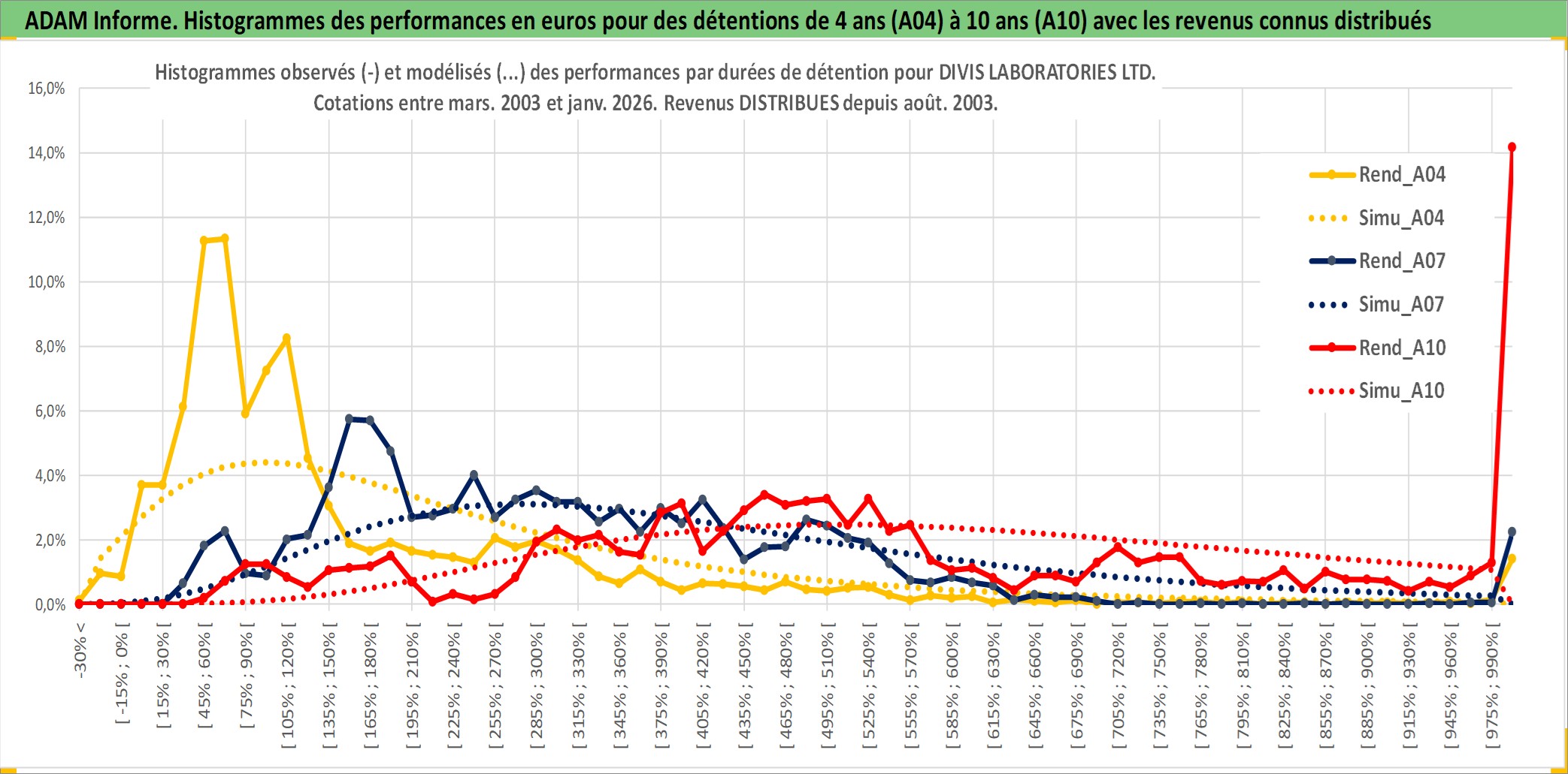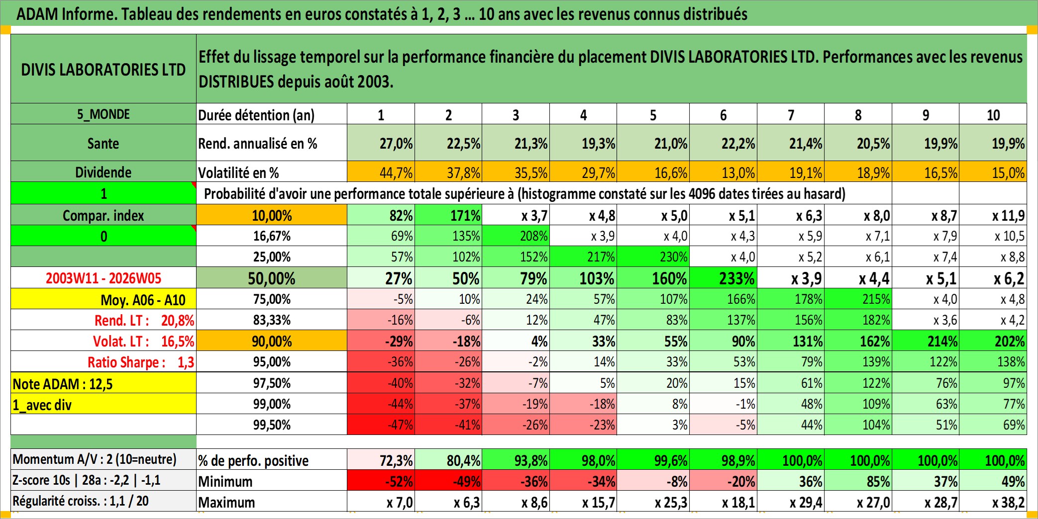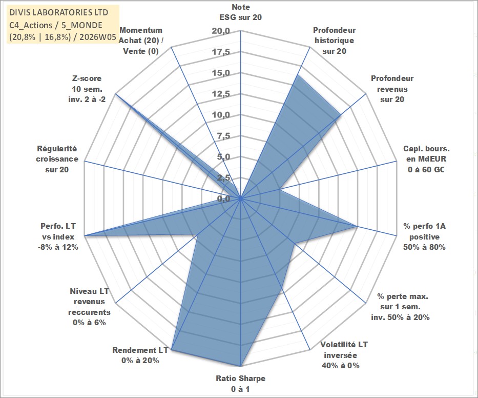 Site dédié aux investisseursPage dédiée sur site financeAnalyse des valorisations hebdomadaires de l'action DIVIS LABORATORIES LTD. Cet actif est cote en INR. Les valorisations sont en contrevaleur EURO et couvrent les semaines 2003W11 a 2026W05. Les revenus de cet actif financier sont pris en compte depuis la semaine 2003W33. La note ESG de cet actif n'est pas connue.