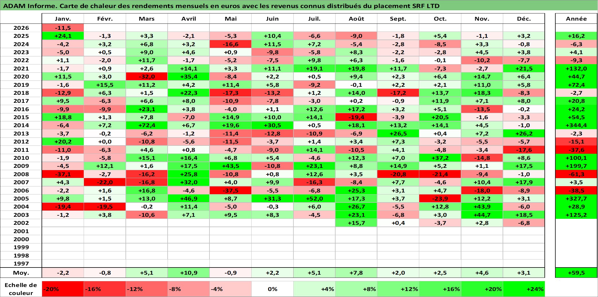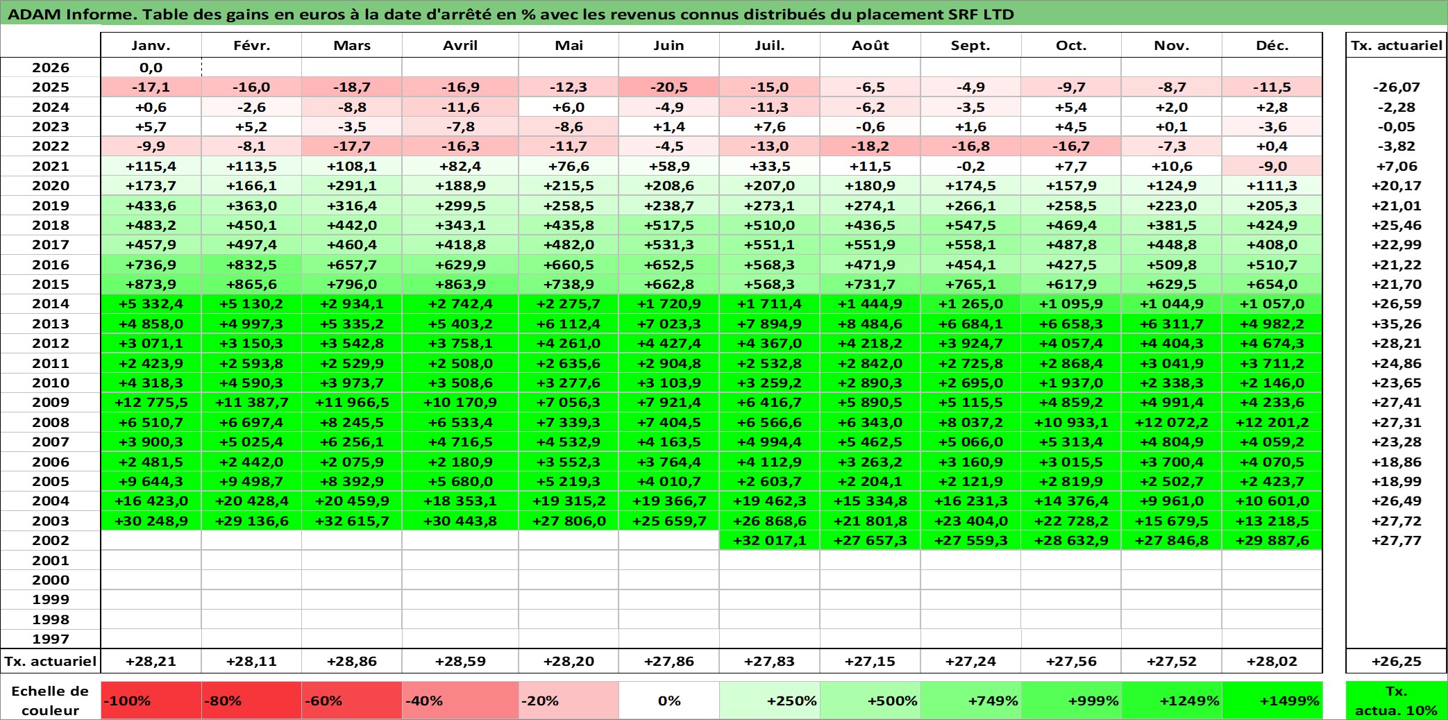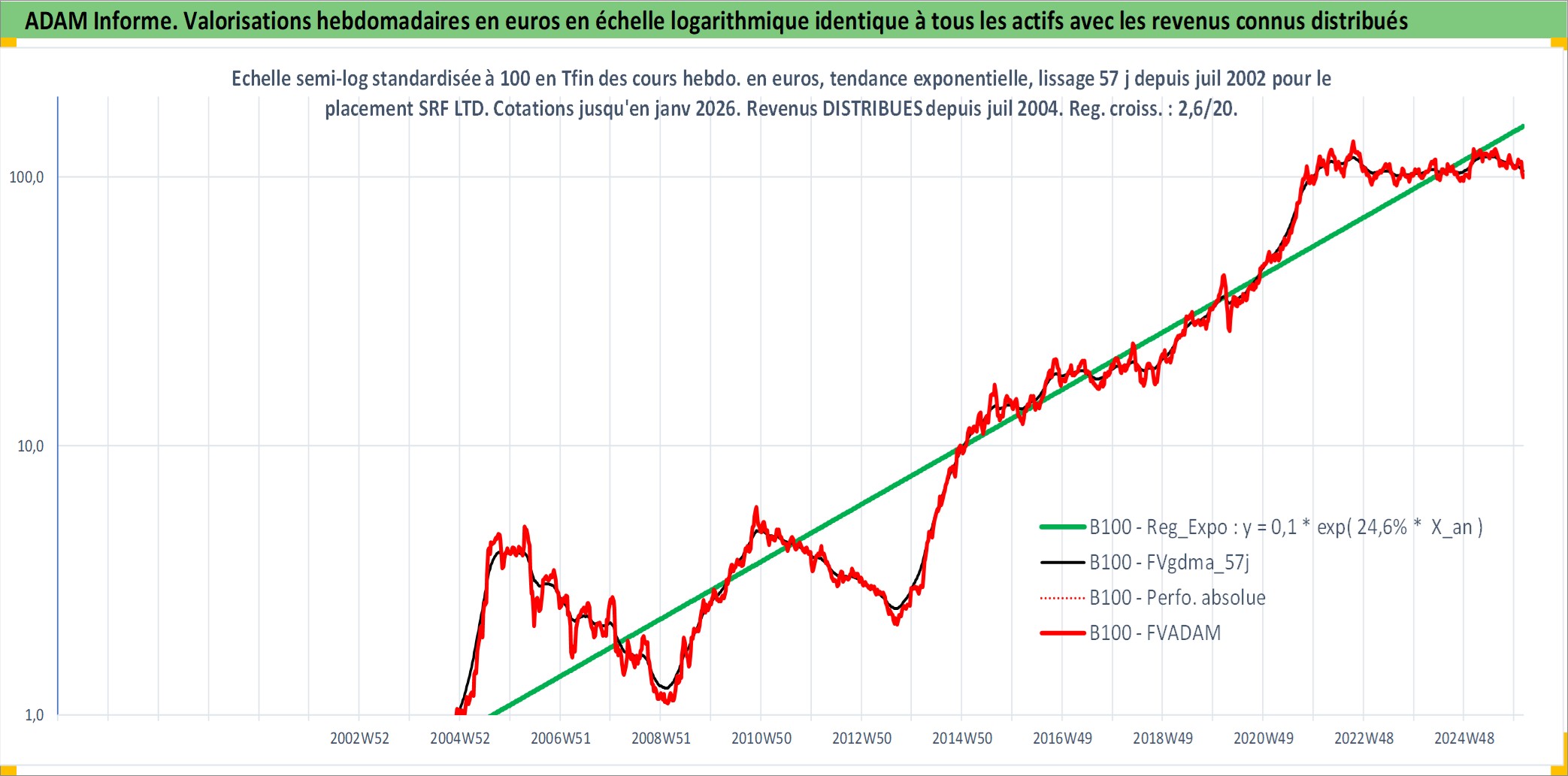 Site dédié aux investisseursPage dédiée sur site financeAnalyse des valorisations hebdomadaires de l'action SRF LTD. Cet actif est cote en INR. Les valorisations sont en contrevaleur EURO et couvrent les semaines 2002W27 a 2026W05. Les revenus de cet actif financier sont pris en compte depuis la semaine 2004W31. La note ESG de cet actif n'est pas connue.