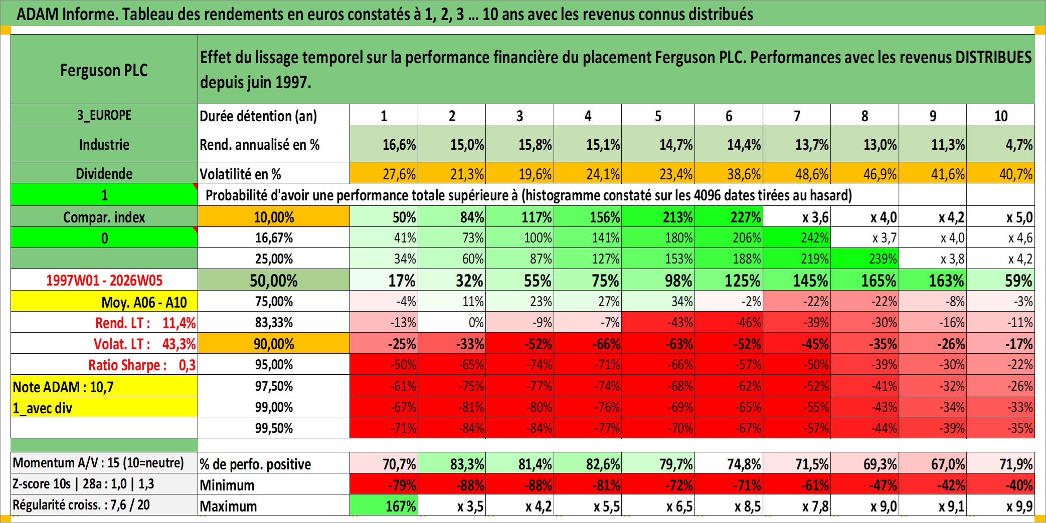 Dernière perfo 10 ans en %