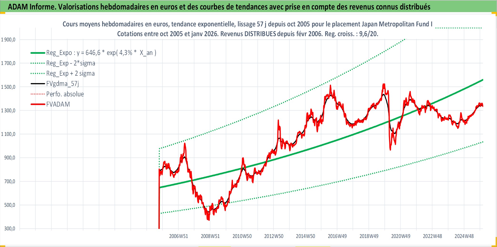 Site dédié aux investisseursPage dédiée sur site financeAnalyse des valorisations hebdomadaires de l'action Japan Metropolitan Fund Investment Corporation. Cet actif est cote en JPY. Les valorisations sont en contrevaleur EURO et couvrent les semaines 2005W40 a 2026W05. Les revenus de cet actif financier sont pris en compte depuis la semaine 2006W08. La note globale ESG de cet actif est estimee a 14.0 (apres rebasage entre 0 et 20).