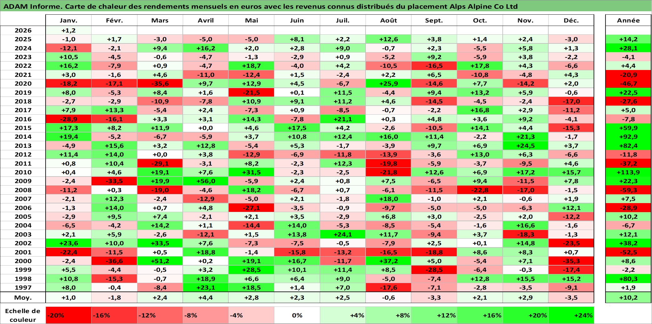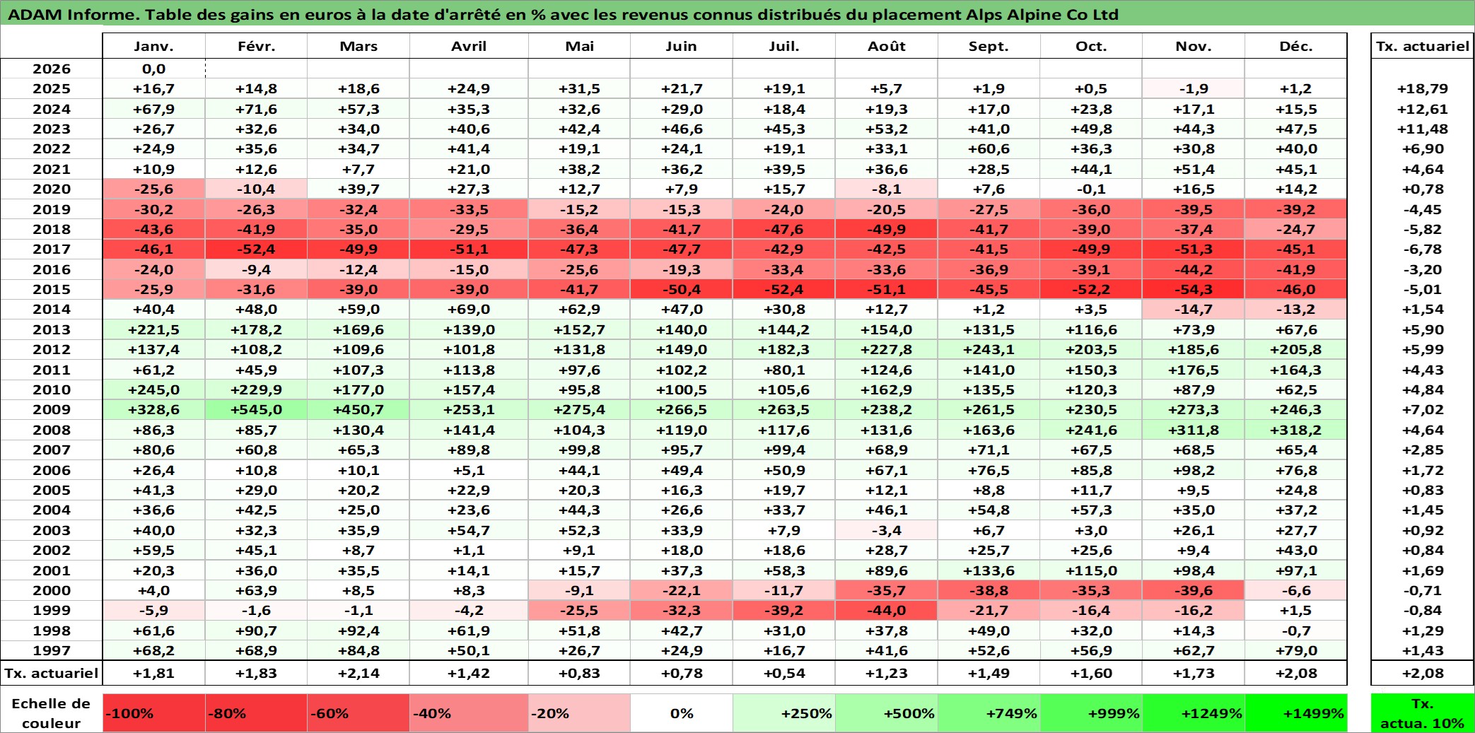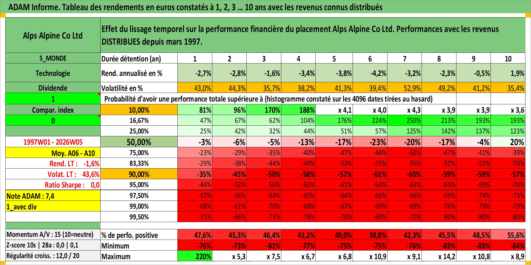 Dernière perfo 10 ans en %