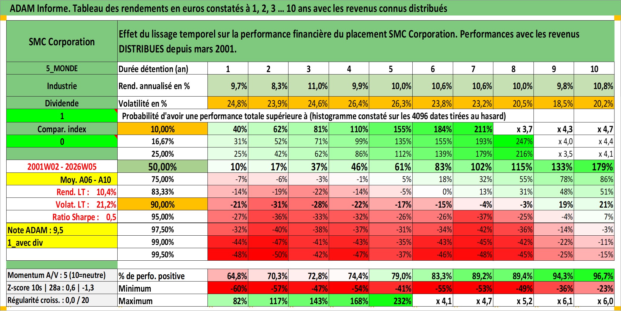 Dernière perfo 10 ans en %