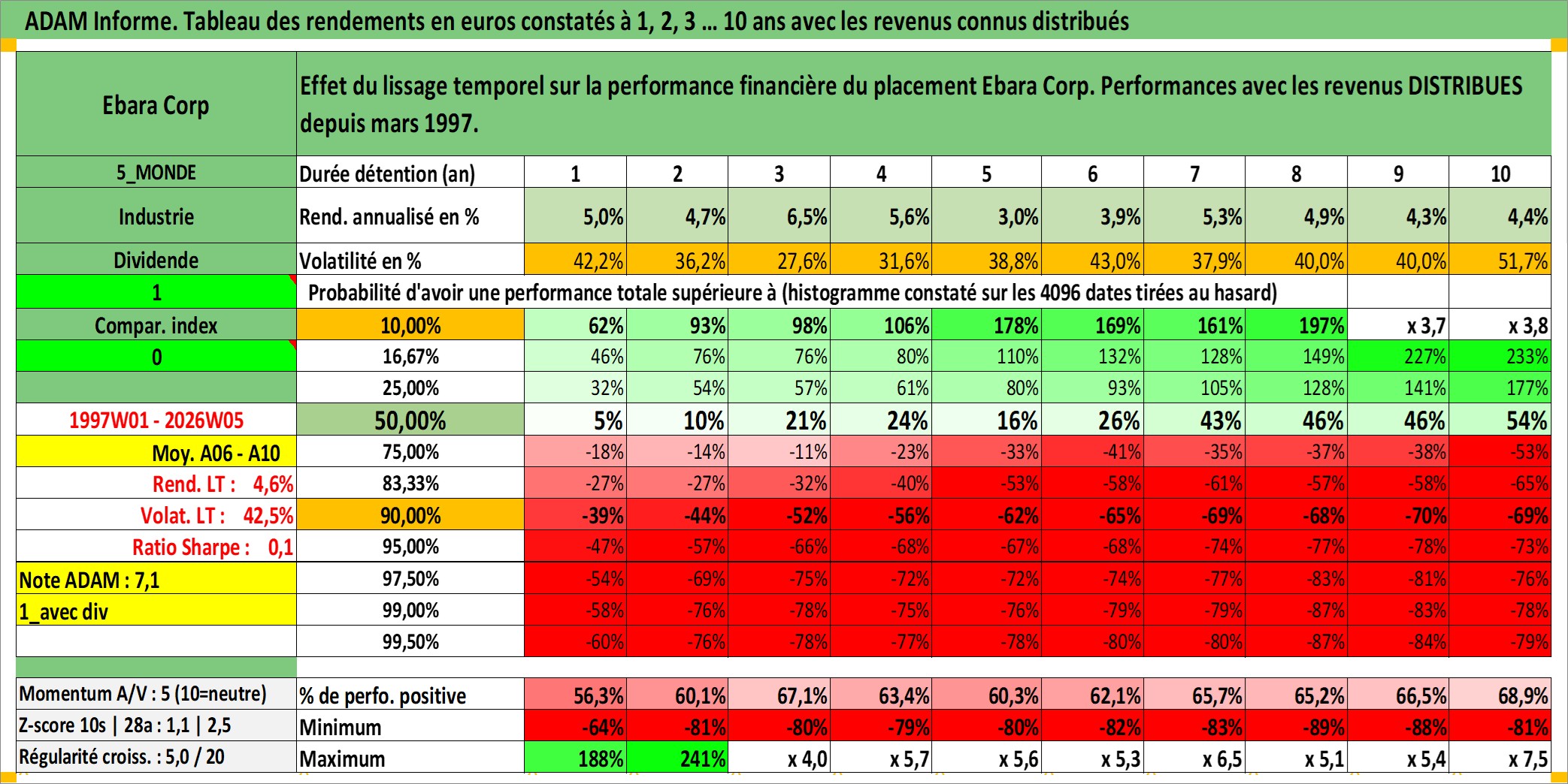 Site dédié aux investisseursPage dédiée sur site financeAnalyse des valorisations hebdomadaires de l'action Ebara Corp. Cet actif est cote en JPY. Les valorisations sont en contrevaleur EURO et couvrent les semaines 1997W01 a 2026W05. Les revenus de cet actif financier sont pris en compte depuis la semaine 1997W13. La note ESG de cet actif n'est pas connue.