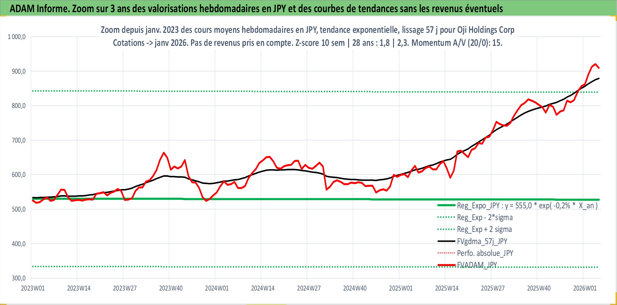 Site dédié aux investisseursPage dédiée sur site financeAnalyse des valorisations hebdomadaires de l'action Oji Holdings Corp. Cet actif est cote en JPY. Les valorisations sont en contrevaleur EURO et couvrent les semaines 1997W01 a 2026W05. Les revenus de cet actif financier sont pris en compte depuis la semaine 1997W13. La note ESG de cet actif n'est pas connue.