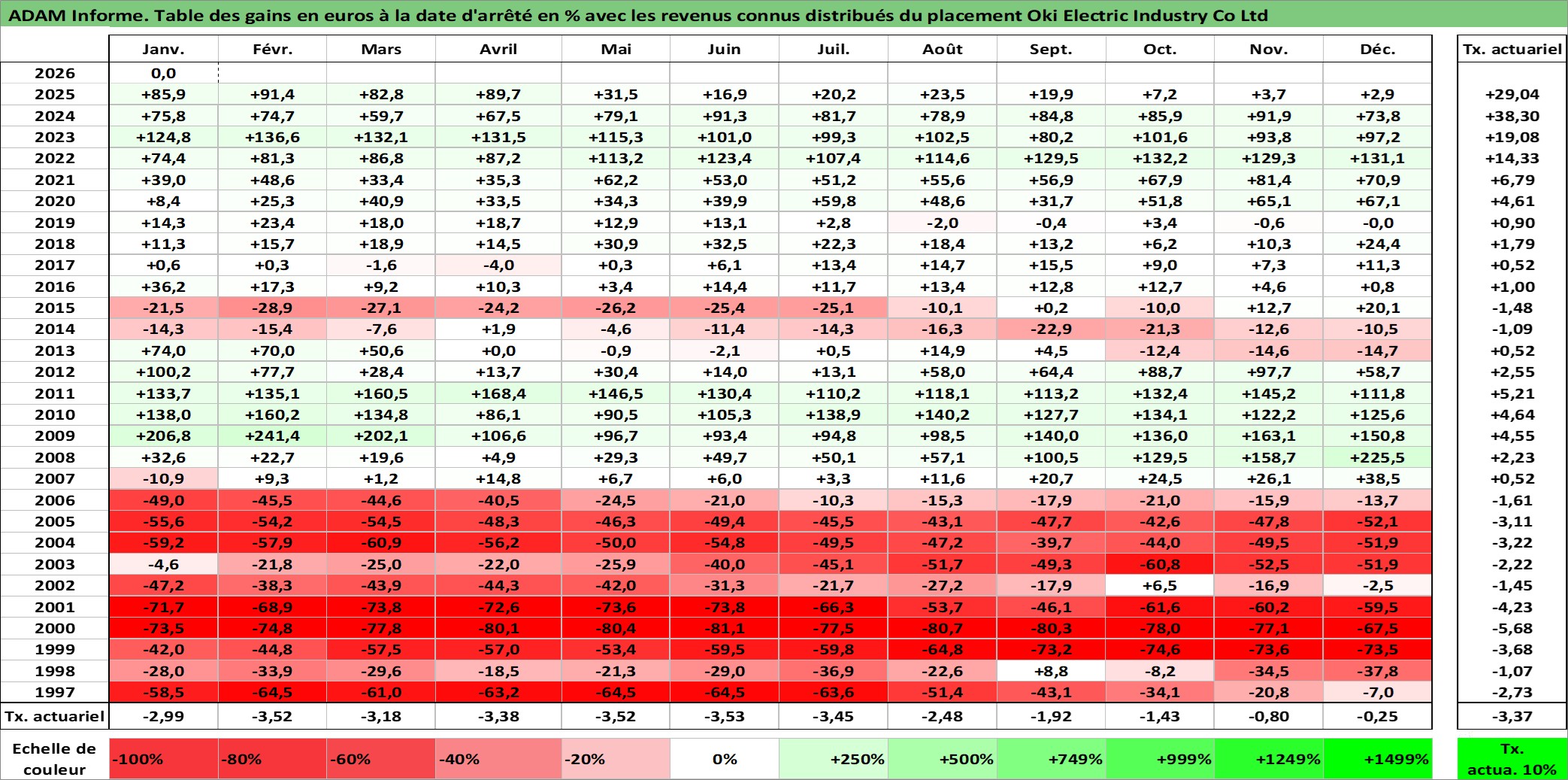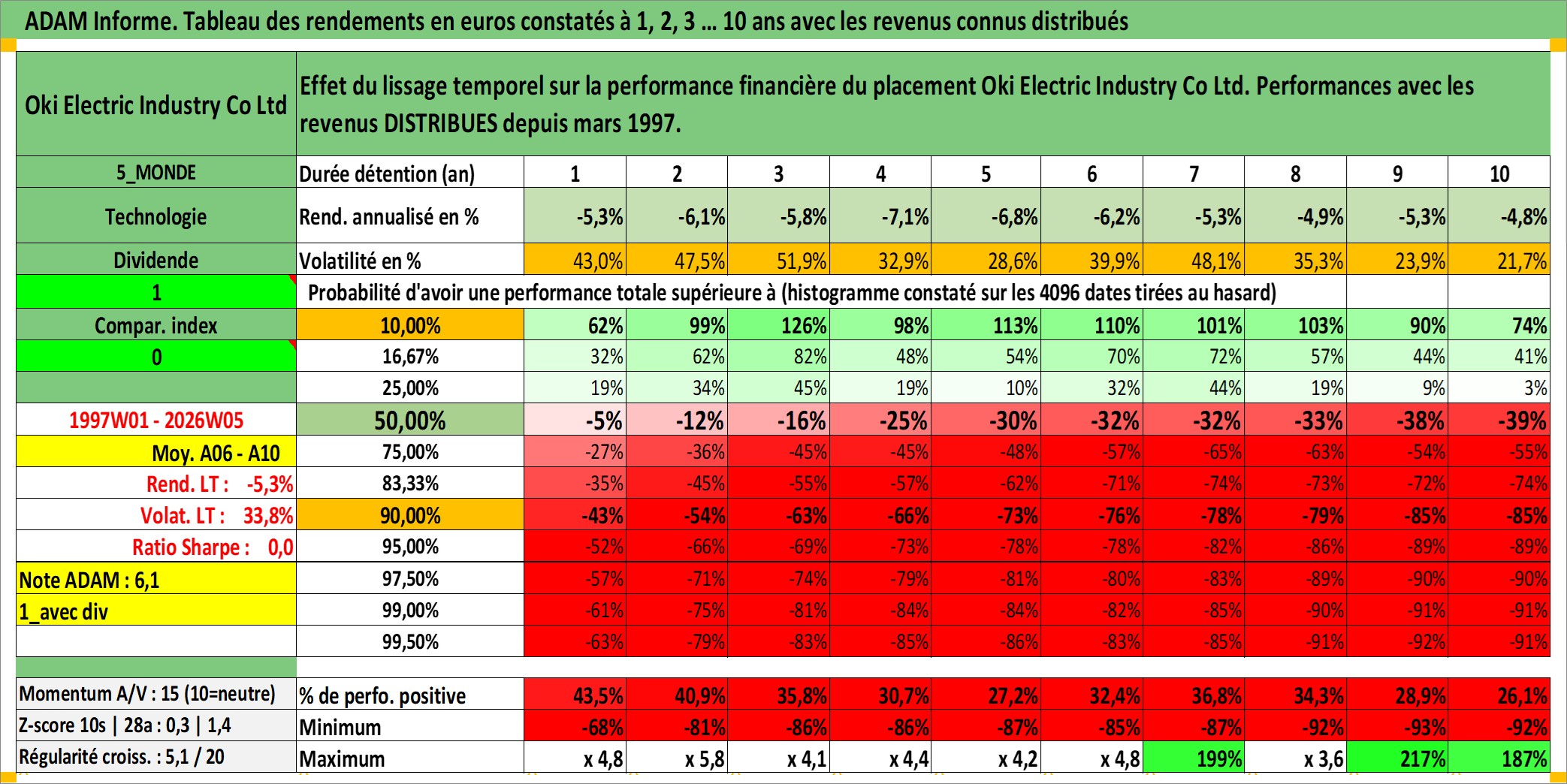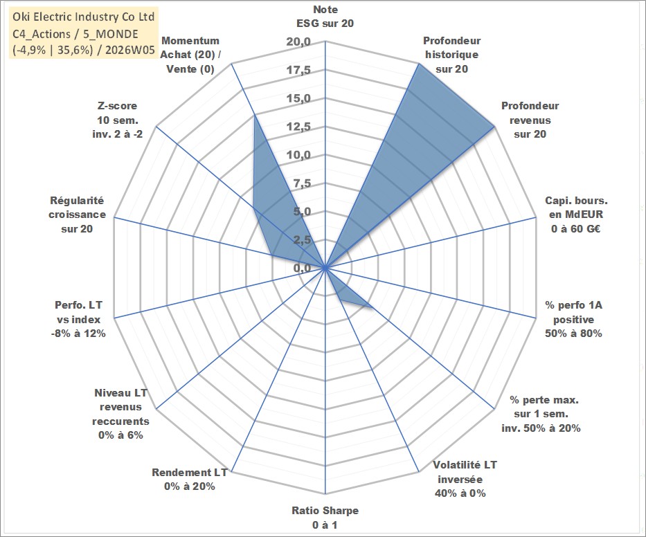 Site dédié aux investisseursPage dédiée sur site financeAnalyse des valorisations hebdomadaires de l'action Oki Electric Industry Co Ltd. Cet actif est cote en JPY. Les valorisations sont en contrevaleur EURO et couvrent les semaines 1997W01 a 2026W05. Les revenus de cet actif financier sont pris en compte depuis la semaine 1997W13. La note ESG de cet actif n'est pas connue.