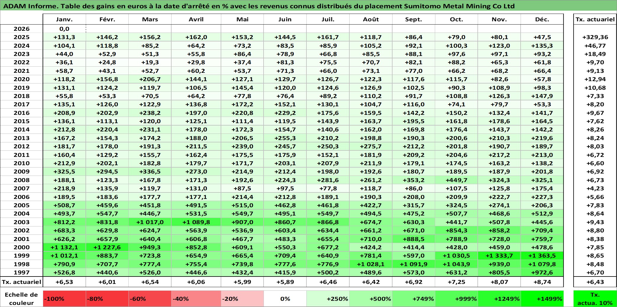 Dernière perfo 10 ans en %