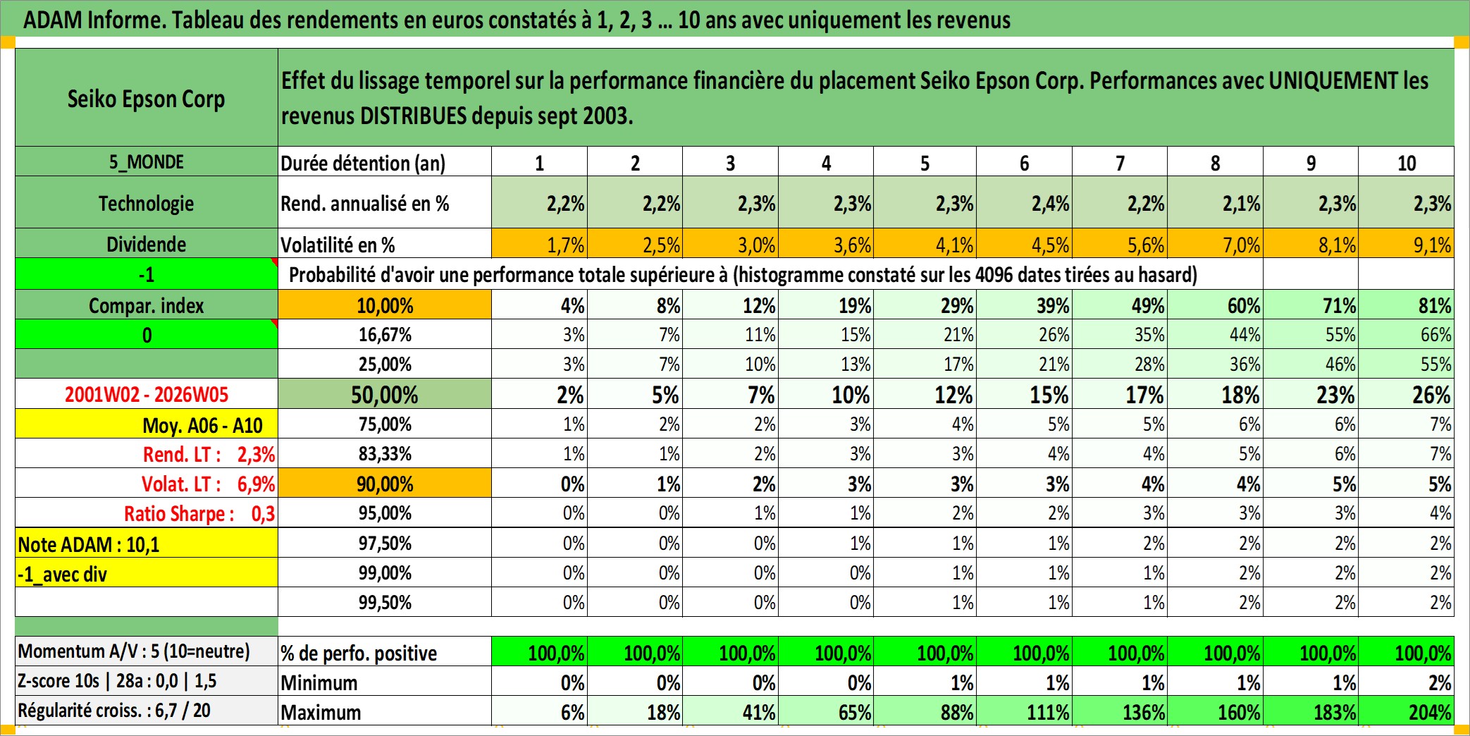 Dernière perfo 10 ans en %