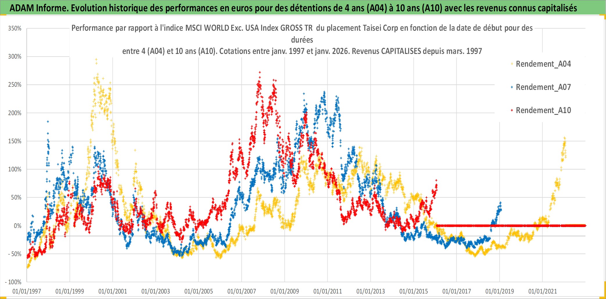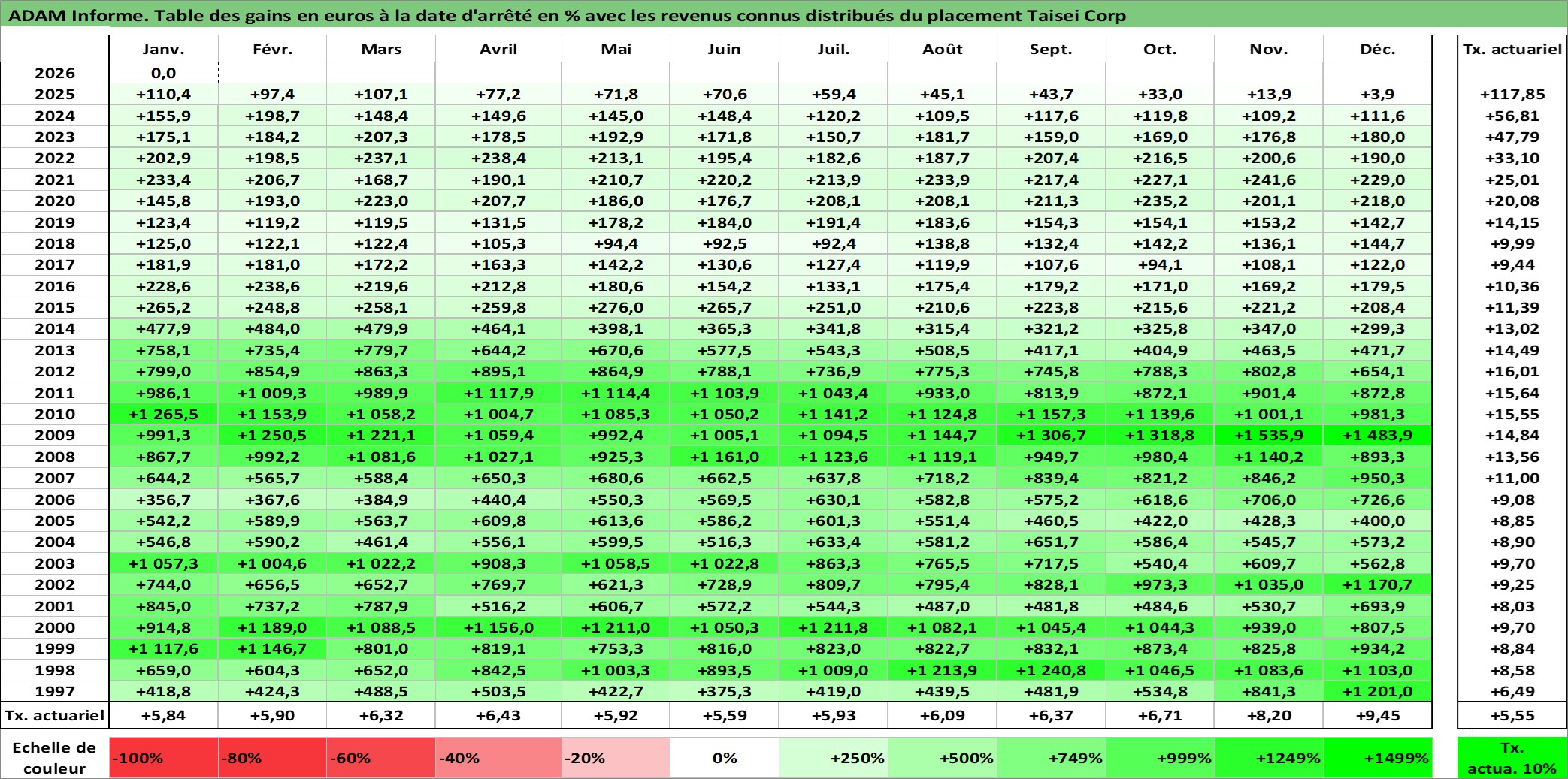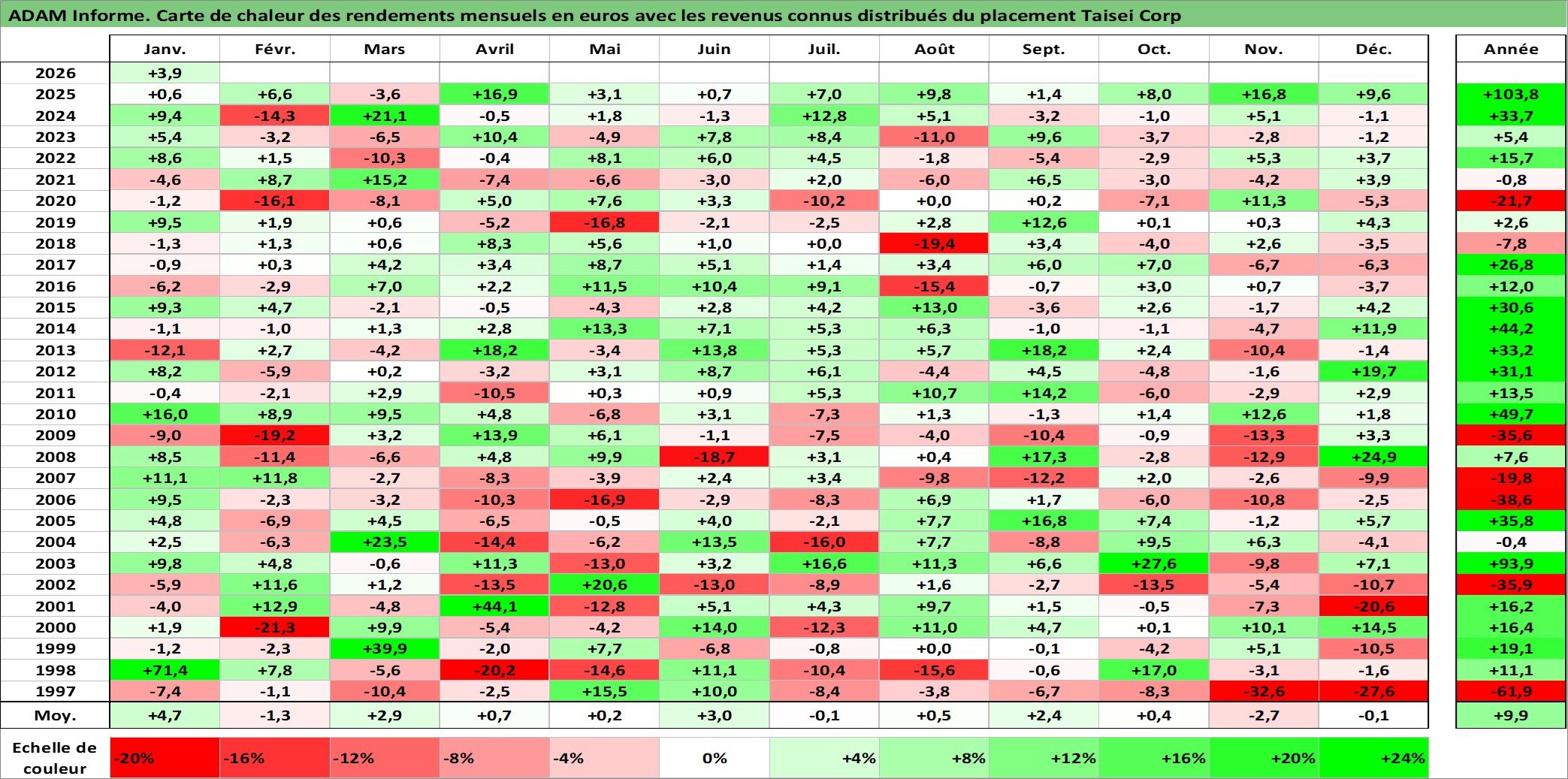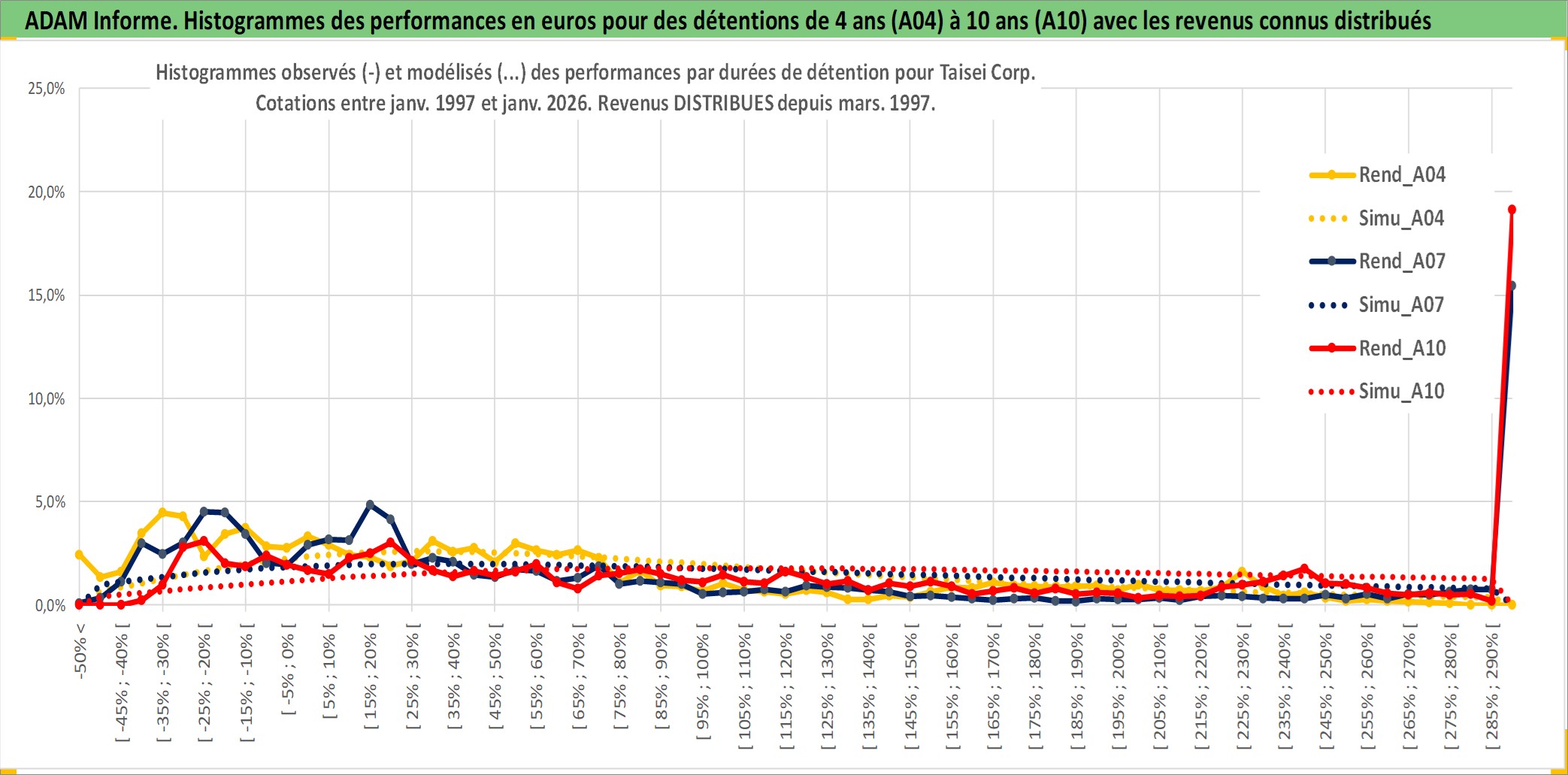 Site dédié aux investisseursPage dédiée sur site financeAnalyse des valorisations hebdomadaires de l'action Taisei Corp. Cet actif est cote en JPY. Les valorisations sont en contrevaleur EURO et couvrent les semaines 1997W01 a 2026W05. Les revenus de cet actif financier sont pris en compte depuis la semaine 1997W13. La note globale ESG de cet actif est estimee a 6.0 (apres rebasage entre 0 et 20).