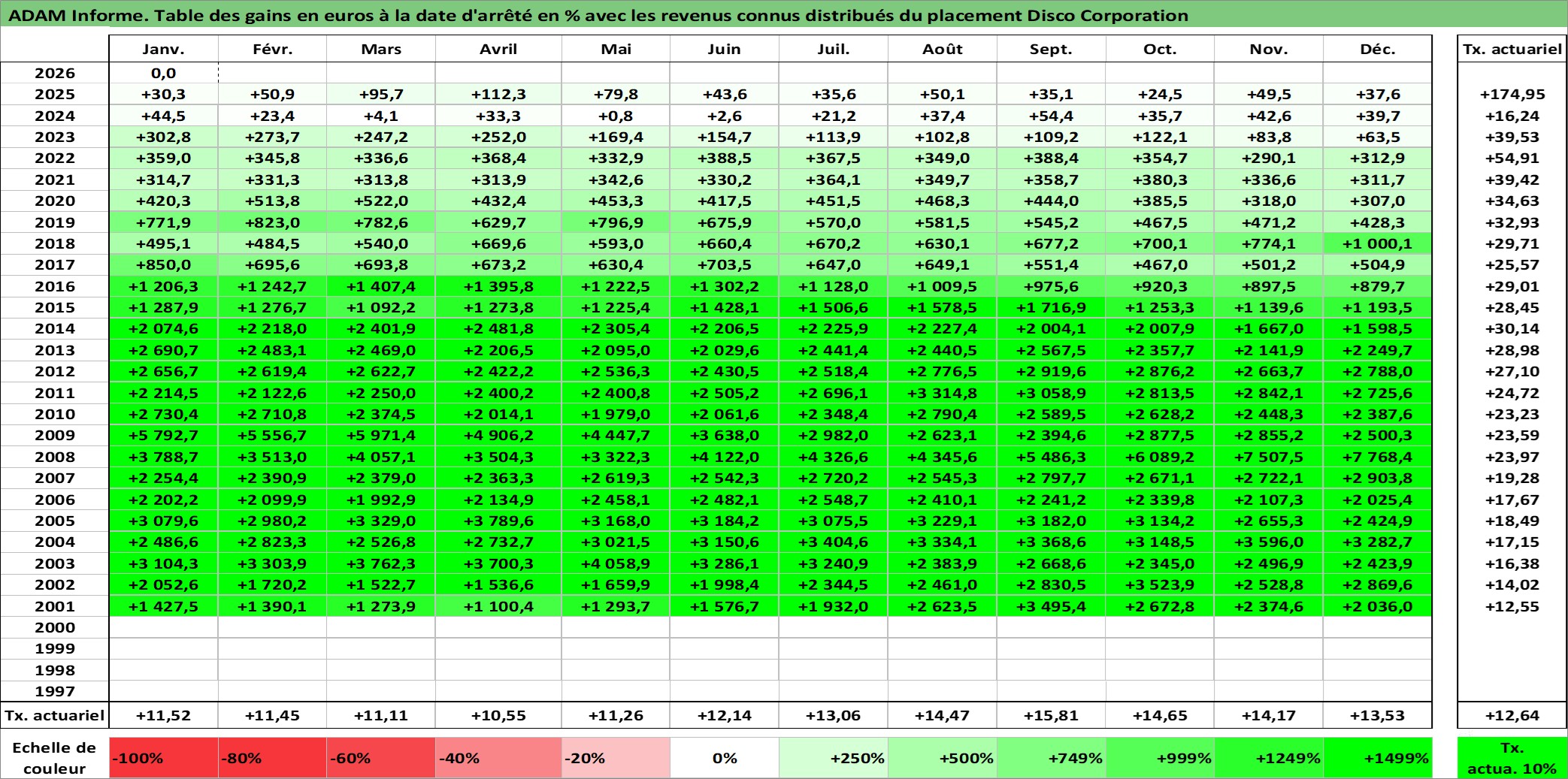 Dernière perfo 10 ans en %