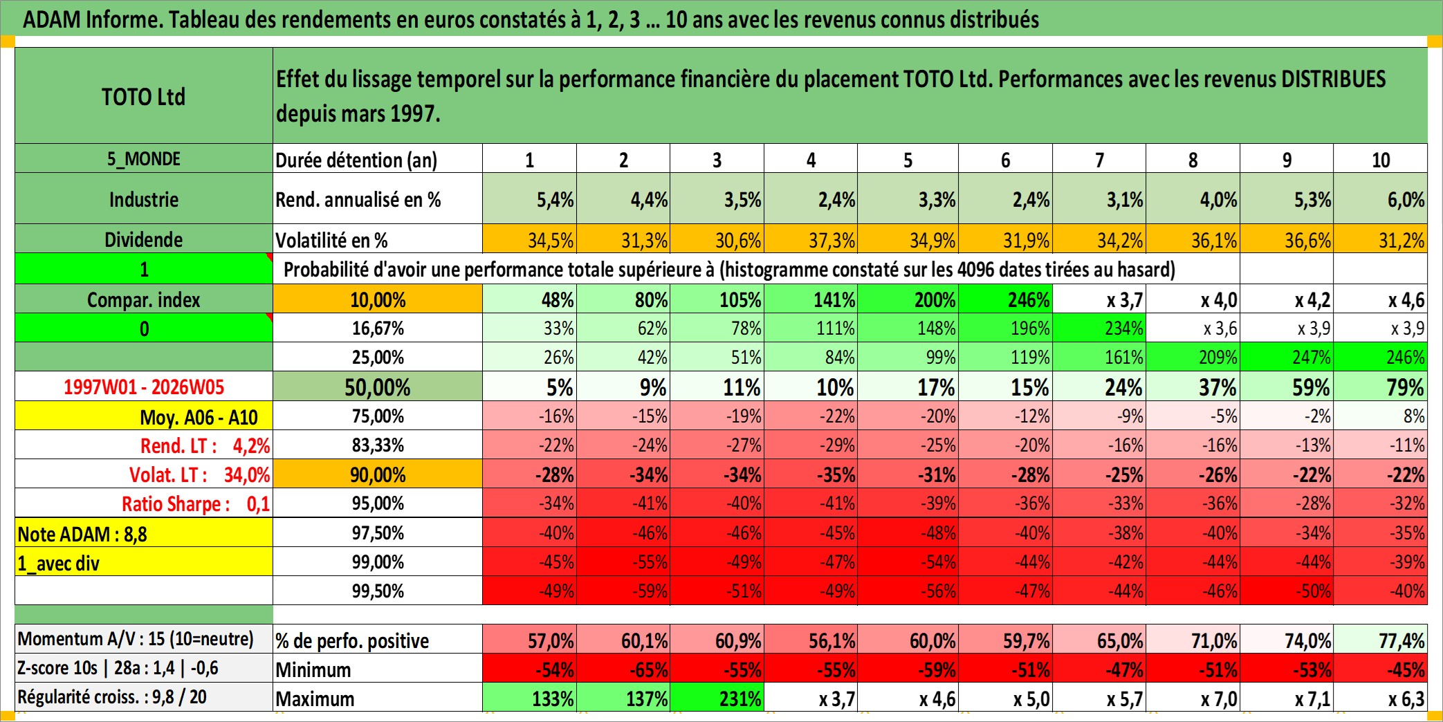 Dernière perfo 10 ans en %