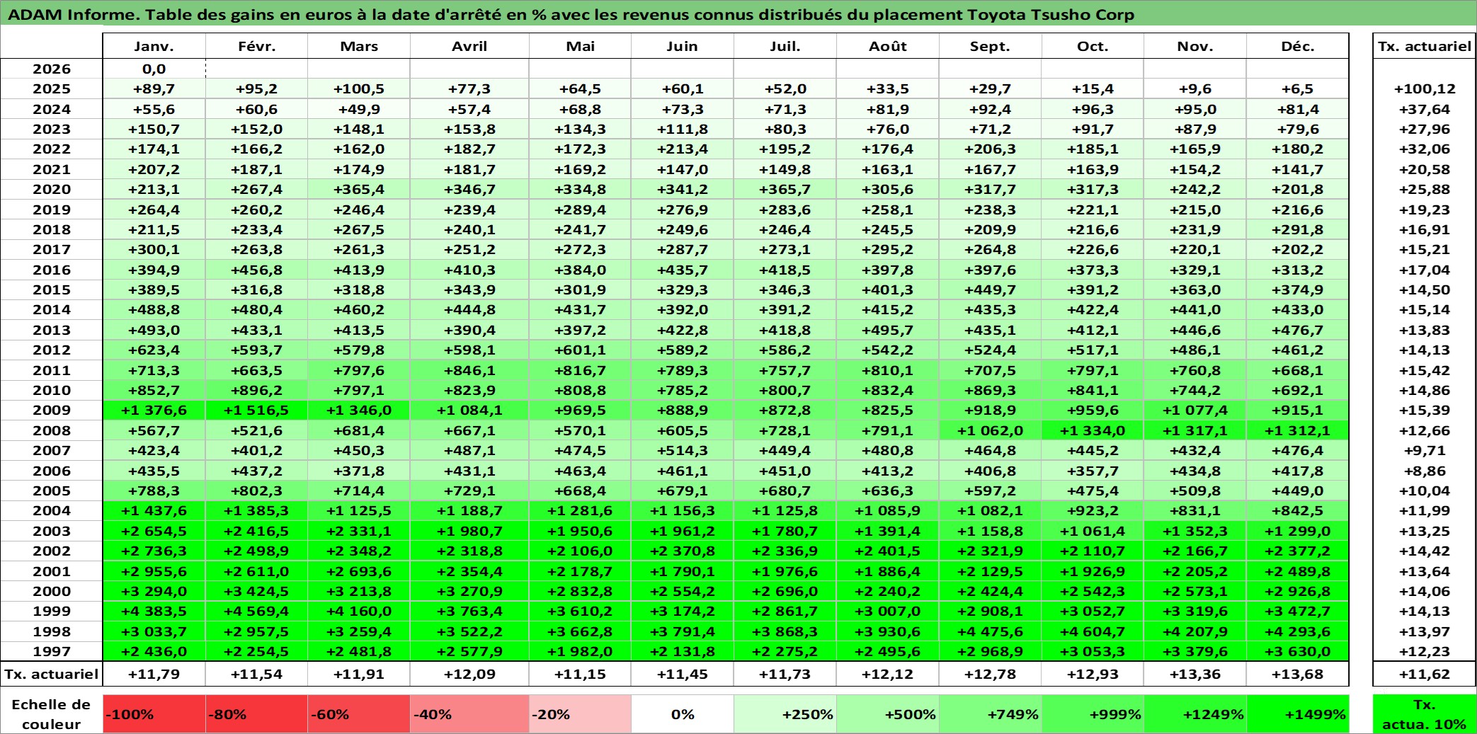 Dernière perfo 10 ans en %