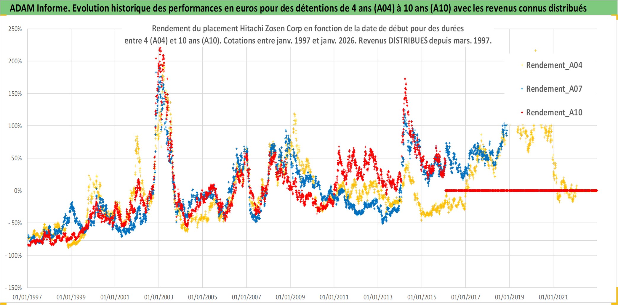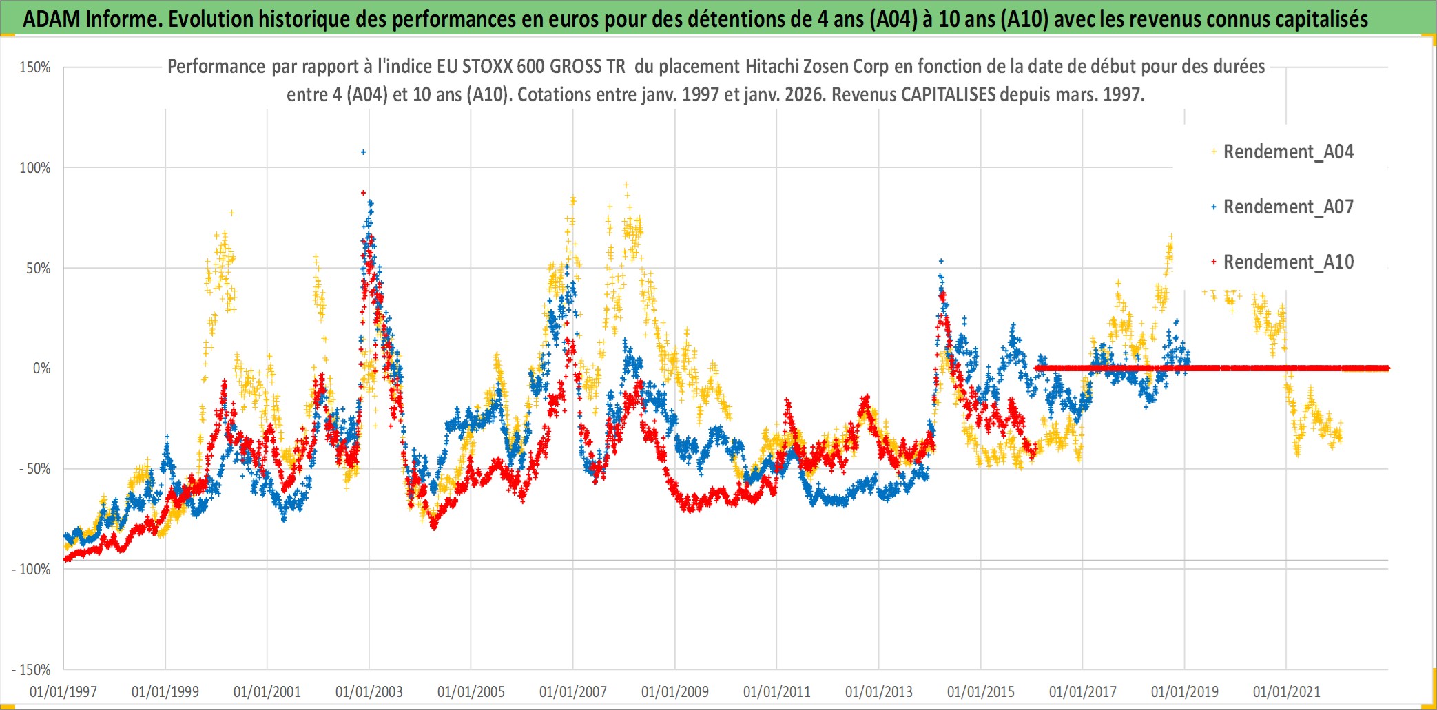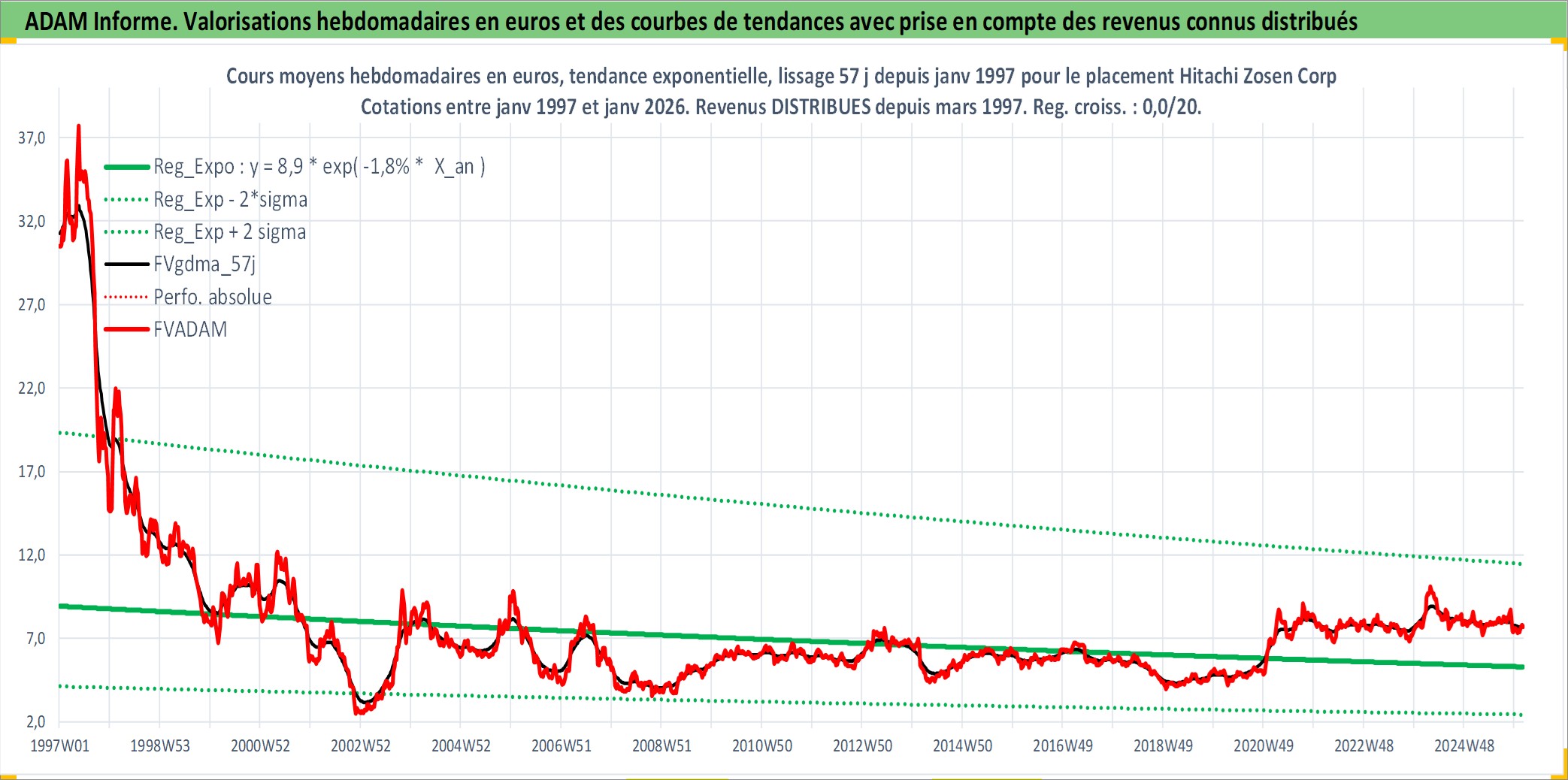 Site dédié aux investisseursPage dédiée sur site financeAnalyse des valorisations hebdomadaires de l'action Hitachi Zosen Corp. Cet actif est cote en JPY. Les valorisations sont en contrevaleur EURO et couvrent les semaines 1997W01 a 2026W05. Les revenus de cet actif financier sont pris en compte depuis la semaine 1997W13. La note ESG de cet actif n'est pas connue.