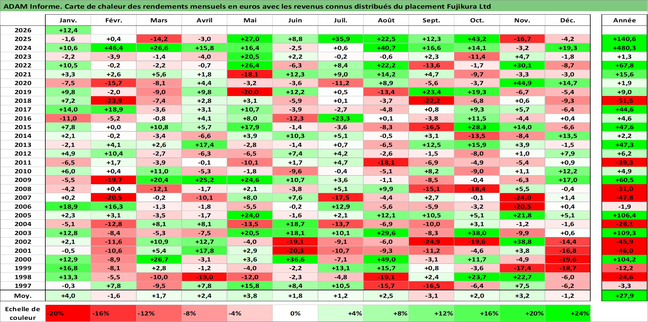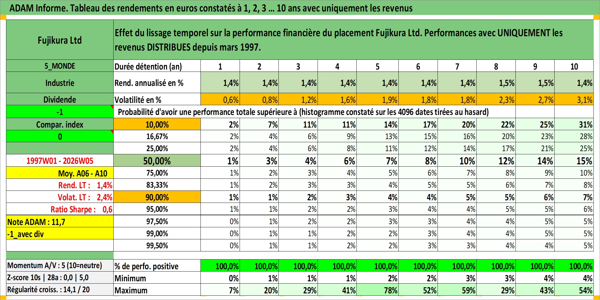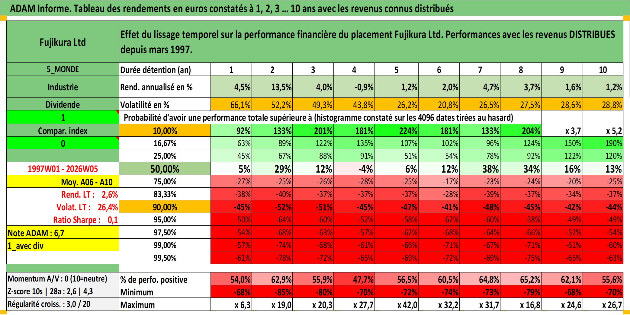 Site dédié aux investisseursPage dédiée sur site financeAnalyse des valorisations hebdomadaires de l'action Fujikura Ltd. Cet actif est cote en JPY. Les valorisations sont en contrevaleur EURO et couvrent les semaines 1997W01 a 2026W05. Les revenus de cet actif financier sont pris en compte depuis la semaine 1997W13. La note ESG de cet actif n'est pas connue.